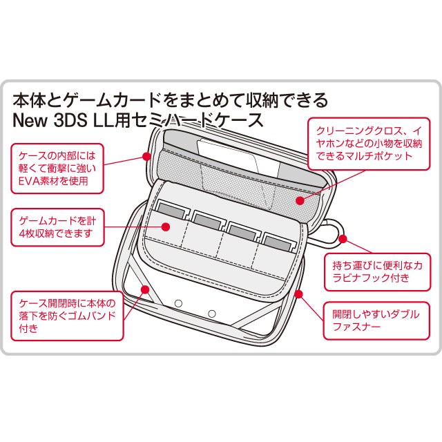 Cyber日本原裝 New 3DSLL周邊 輕量化 EVA 掛勾式硬殼包 防震包 主機包 黑色款【魔力電玩】