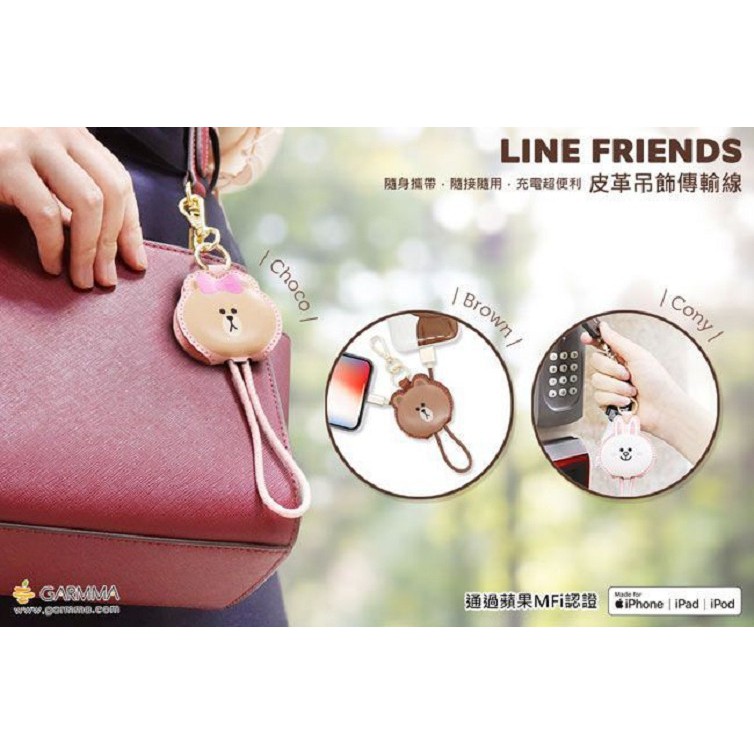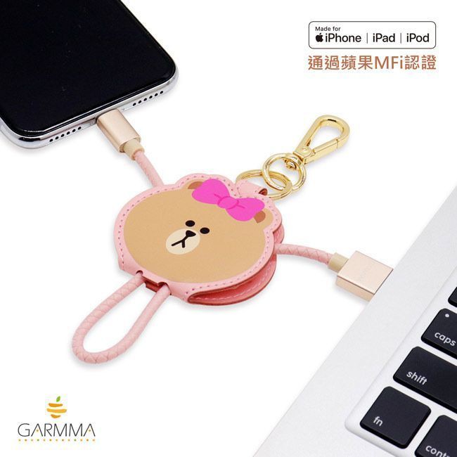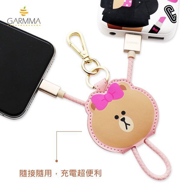GARMMA 永橙 LINE Friends Apple Lightning 皮革吊飾傳輸線 熊美 【魔力電玩】
