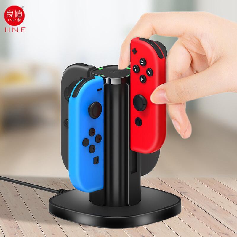 IINE良值 Switch周邊NS JoyCon 用4IN1 過充保護 手把充電座 圓柱形 四手充電座【魔力電玩】