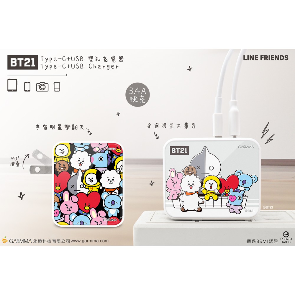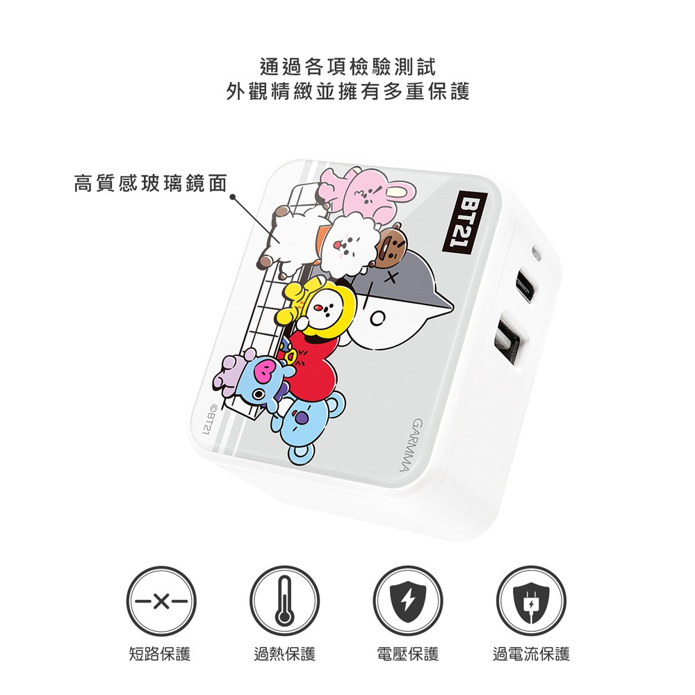 GARMMA 永橙 宇宙明星BT21 Type-C & USB 雙孔充電器 【魔力電玩】