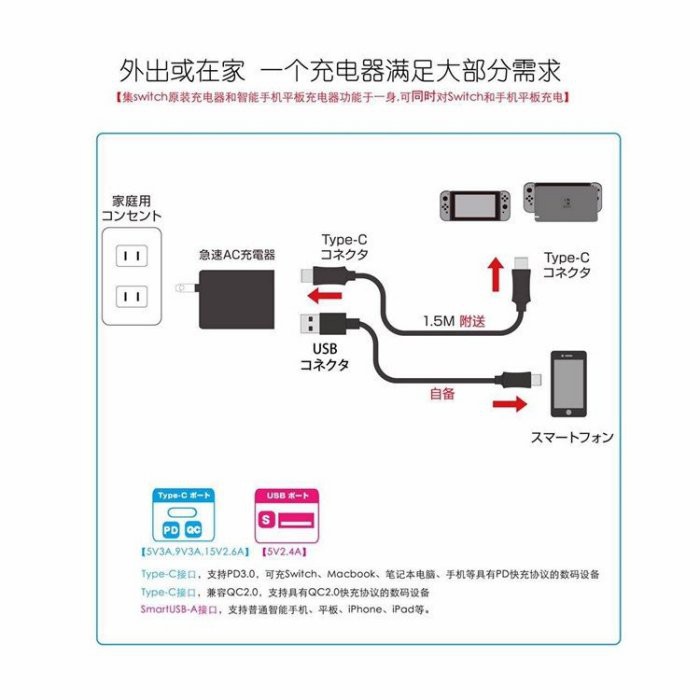 良值 Switch周邊NS 39W/51W急速 AC變壓器 充電器 附type-c充電線可充底座【魔力電玩】