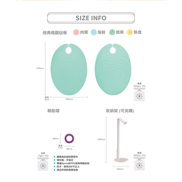 [Zaniin]TPU 經典橢圓砧板組(含 輔助環)(馬卡龍色系)-100%TPU 環保、無毒、耐熱、不掉屑