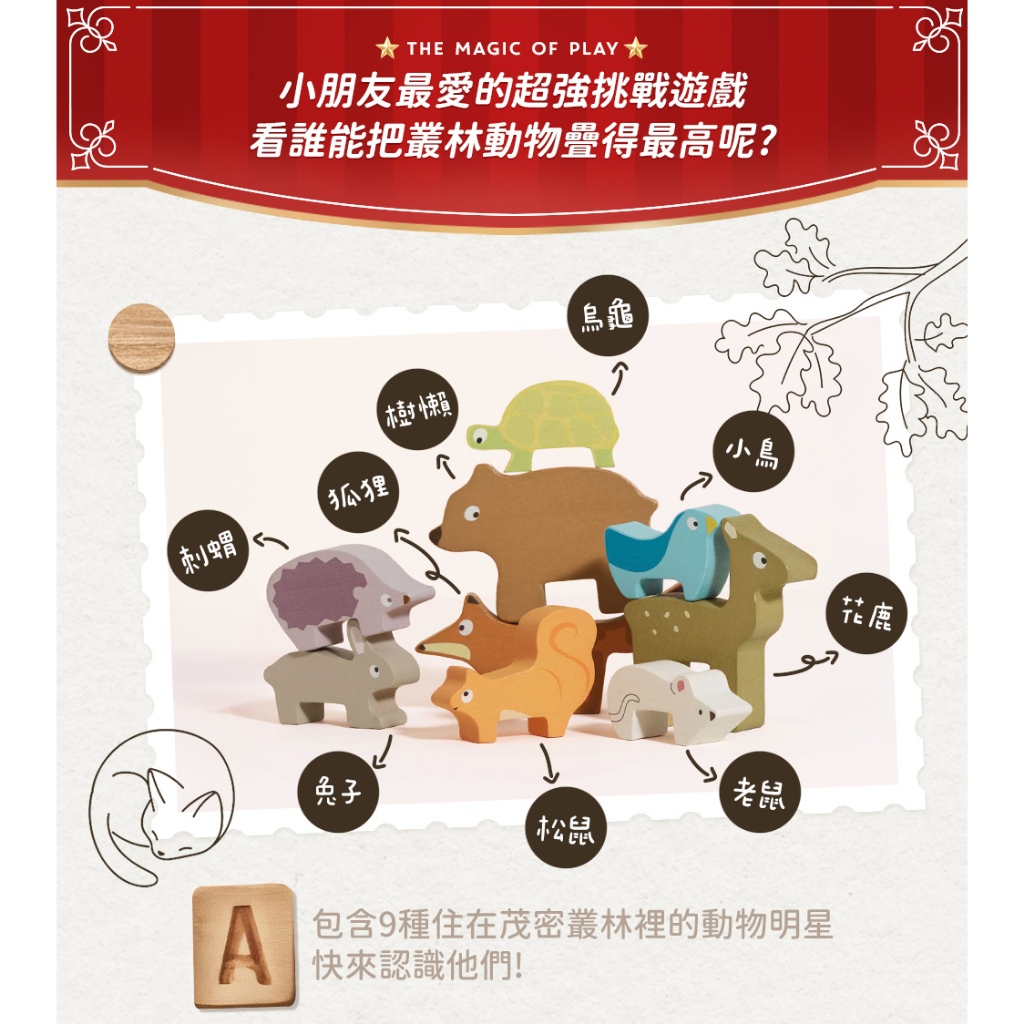 英國 Le Toy Van 啟蒙益智玩具系列-森林動物疊疊平衡啟蒙木質玩具【hughugbaby抱抱寶貝】