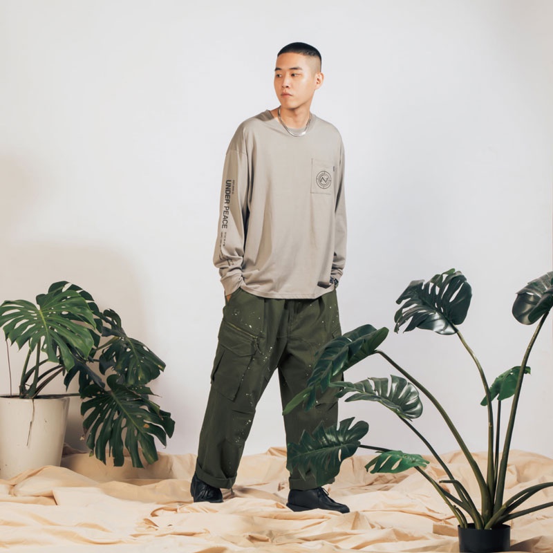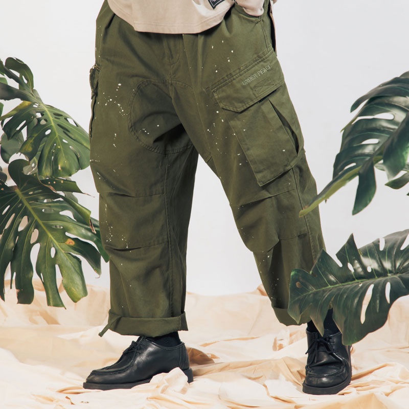 UNDER PEACE - 21AW ROUGH / WIDE PCS PANTS 寬版潑漆 工作褲 (綠色) 化學原宿