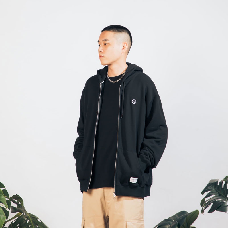 UNDER PEACE - 21AW BASIC / ZIP UP HOODED 白標 連帽外套 (黑色) 化學原宿
