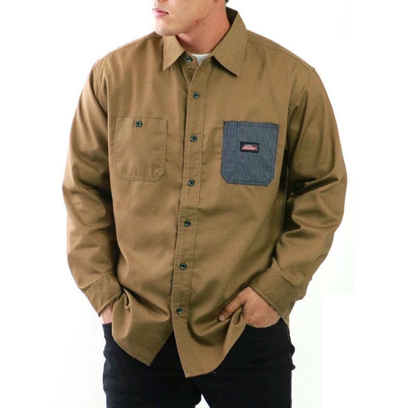 【DICKIES】日本限定 2478-2000 T/C TWILL WORK SHIRT 拼色口袋 長袖襯衫 (卡其色)