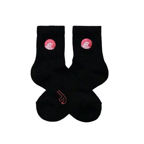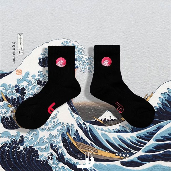BEST FOOT FRIEND - BF200008-01 電繡巨浪圖 低筒襪 / 短襪 (黑色) 化學原宿