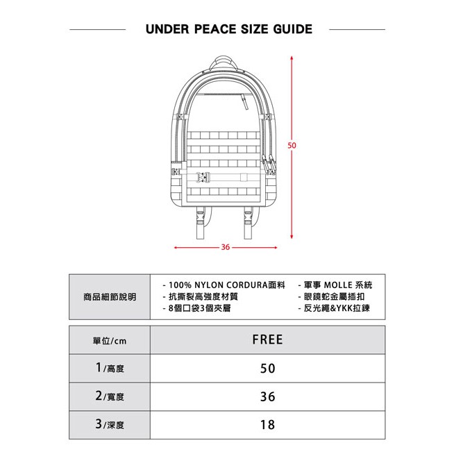 UNDER PEACE 20SS UTILITY / MILITARY BACKPACK 多功能 軍事 後背包 (黑色)
