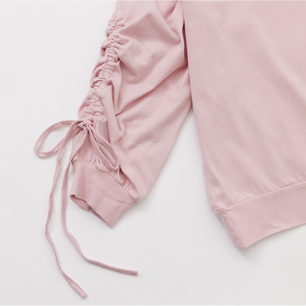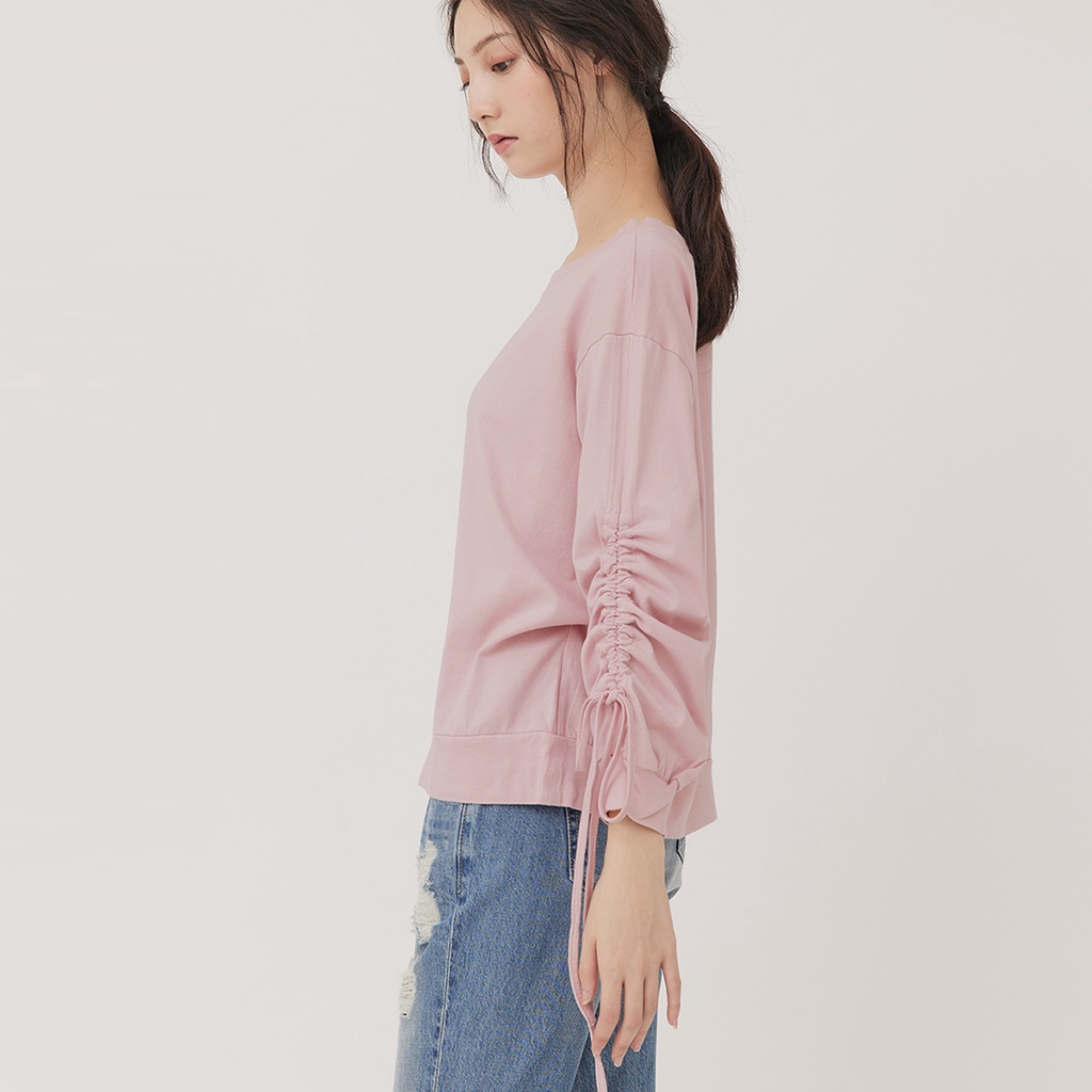 【ERSS】袖拉繩抽皺寬版長袖上衣 粉紅 -女【K60216】