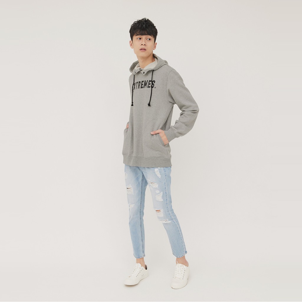 【ERSS】高領開釦厚絨連帽長袖上衣 麻灰 -男【K60211】