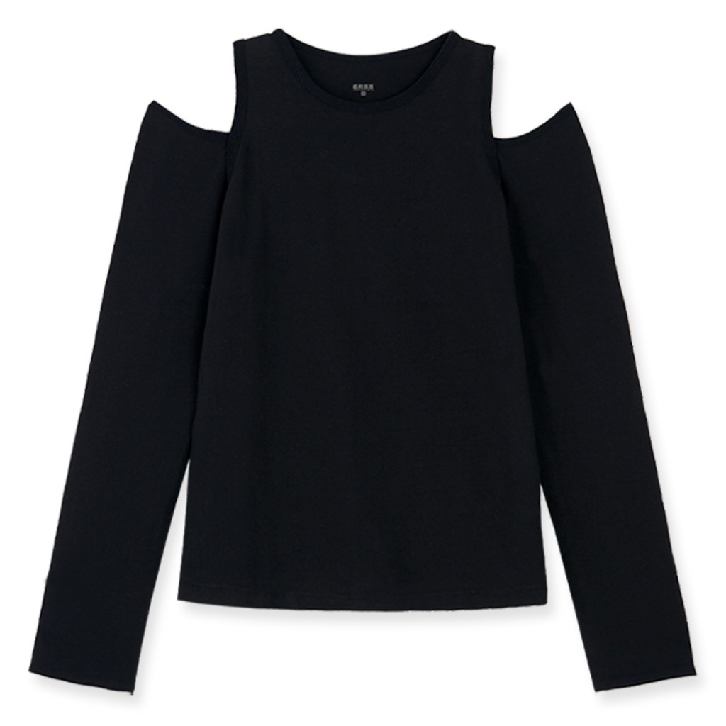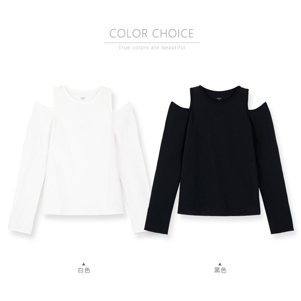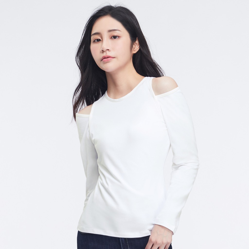 【ERSS】性感小露肩舒適彈性薄長T 白色 【K60172】