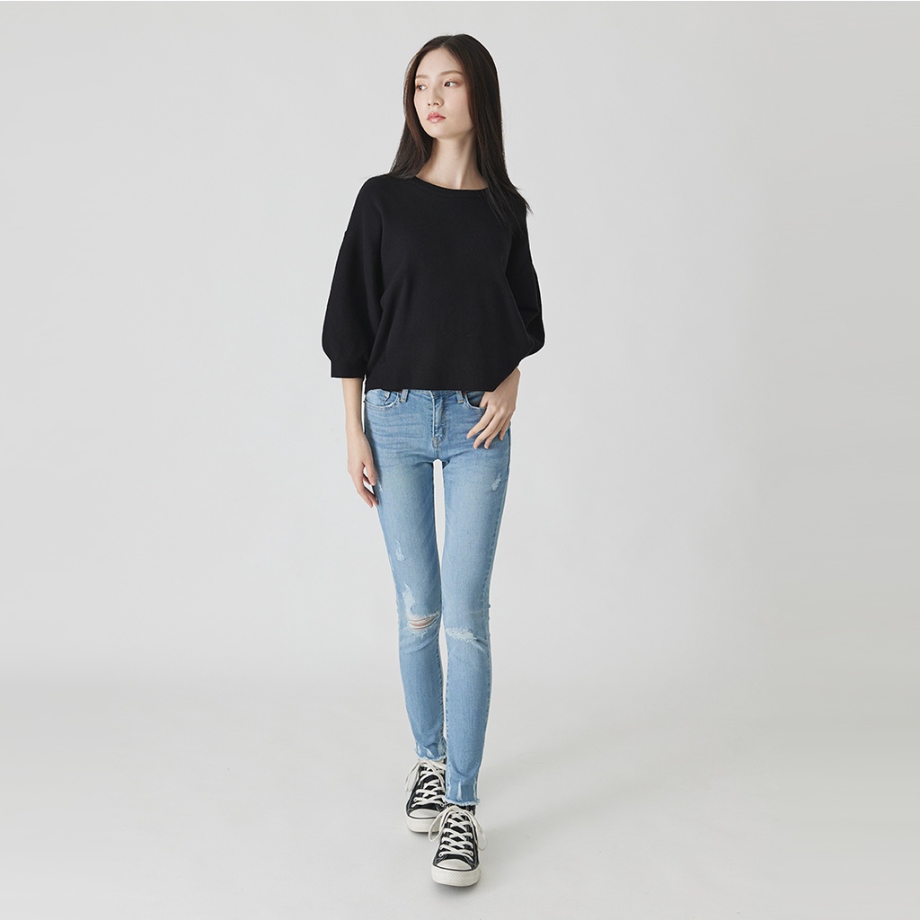 【ERSS】 女裝 上衣 七分袖上衣 顯瘦上衣 針織 針織上衣 黑色 【仙女姊姊】【K80013】
