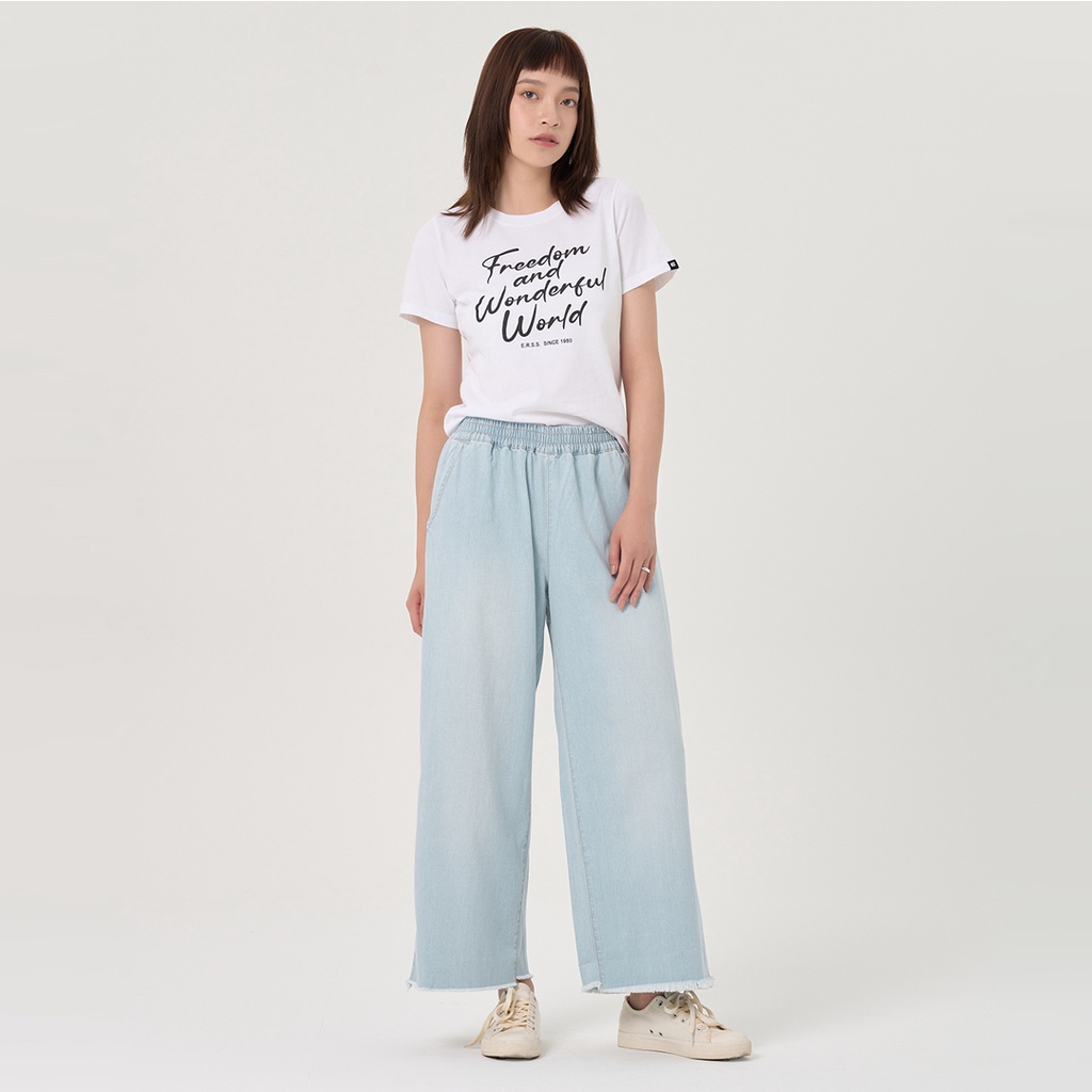 【ERSS】 女裝 牛仔褲 寬褲 八分寬褲 八分褲 純棉 藍色 淺藍 【S37030】