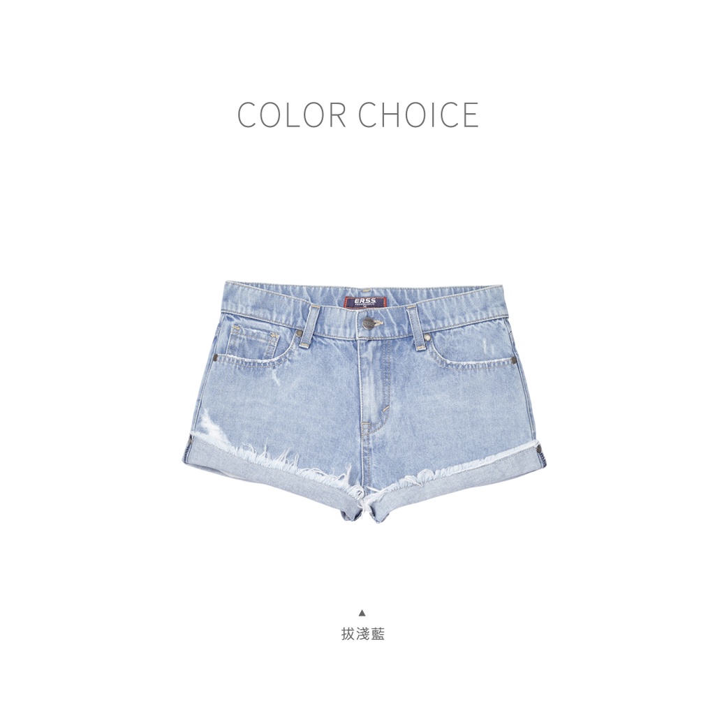 【ERSS】女裝 短褲 牛仔短褲 反摺 熱浪 不收邊 純棉 淺藍【S20060】