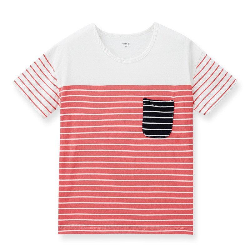 【ERSS】條紋寬版女T恤 淺桔色【K70058】