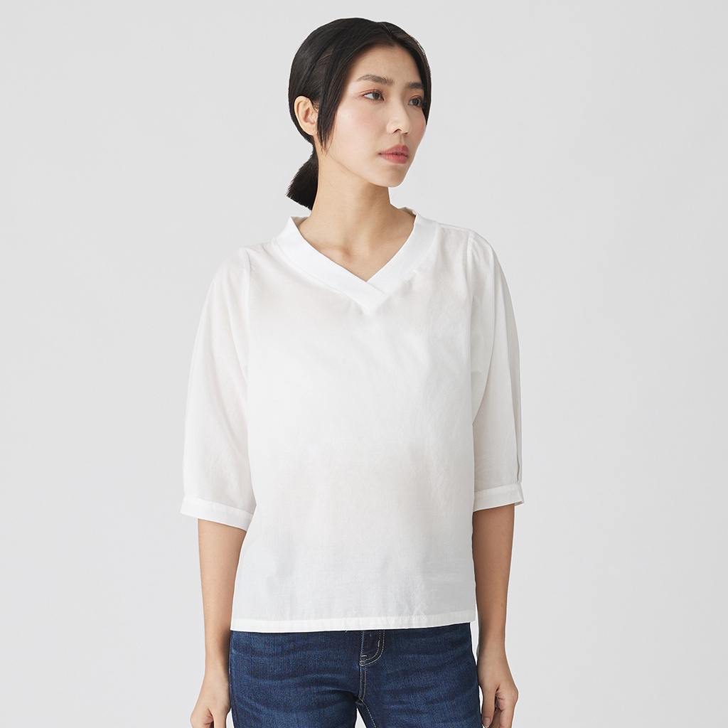【ERSS】女裝 五分袖 短袖 上衣 V領 微透膚 簡約氣質 米白【K40029】