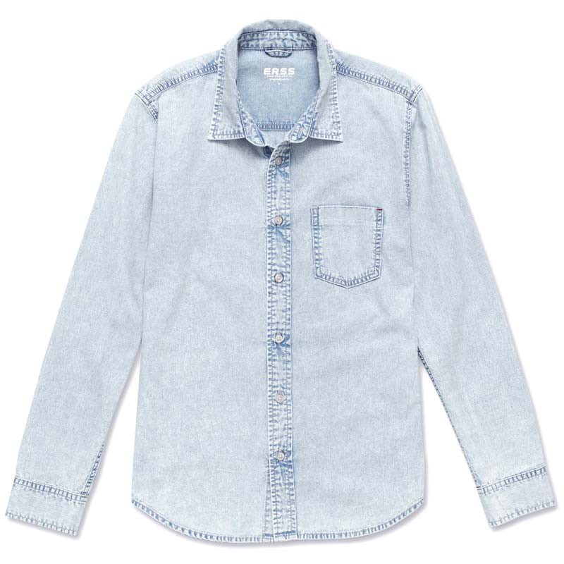 【ERSS】 男裝 襯衫 牛仔 牛仔襯衫 長袖上衣 長袖襯衫 牛仔長襯衫 單一口袋 重漂藍【K30007】