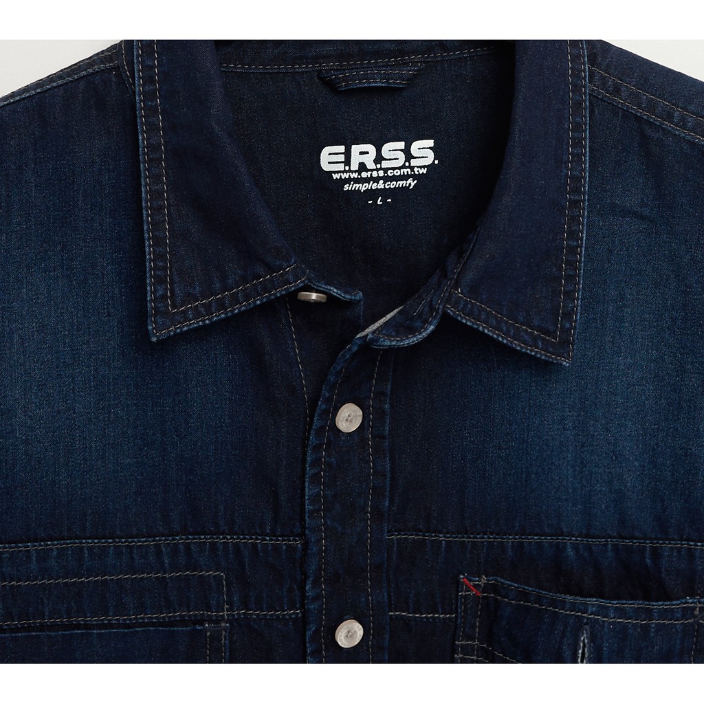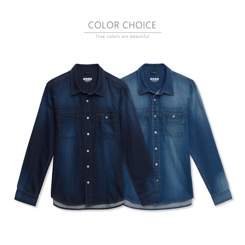【ERSS】 男裝 襯衫 牛仔 牛仔襯衫 長袖上衣 長袖襯衫 牛仔長襯衫 雙口袋 拔淺藍【K30008】