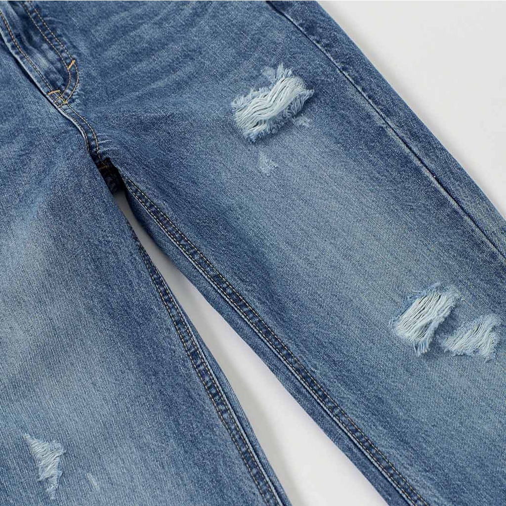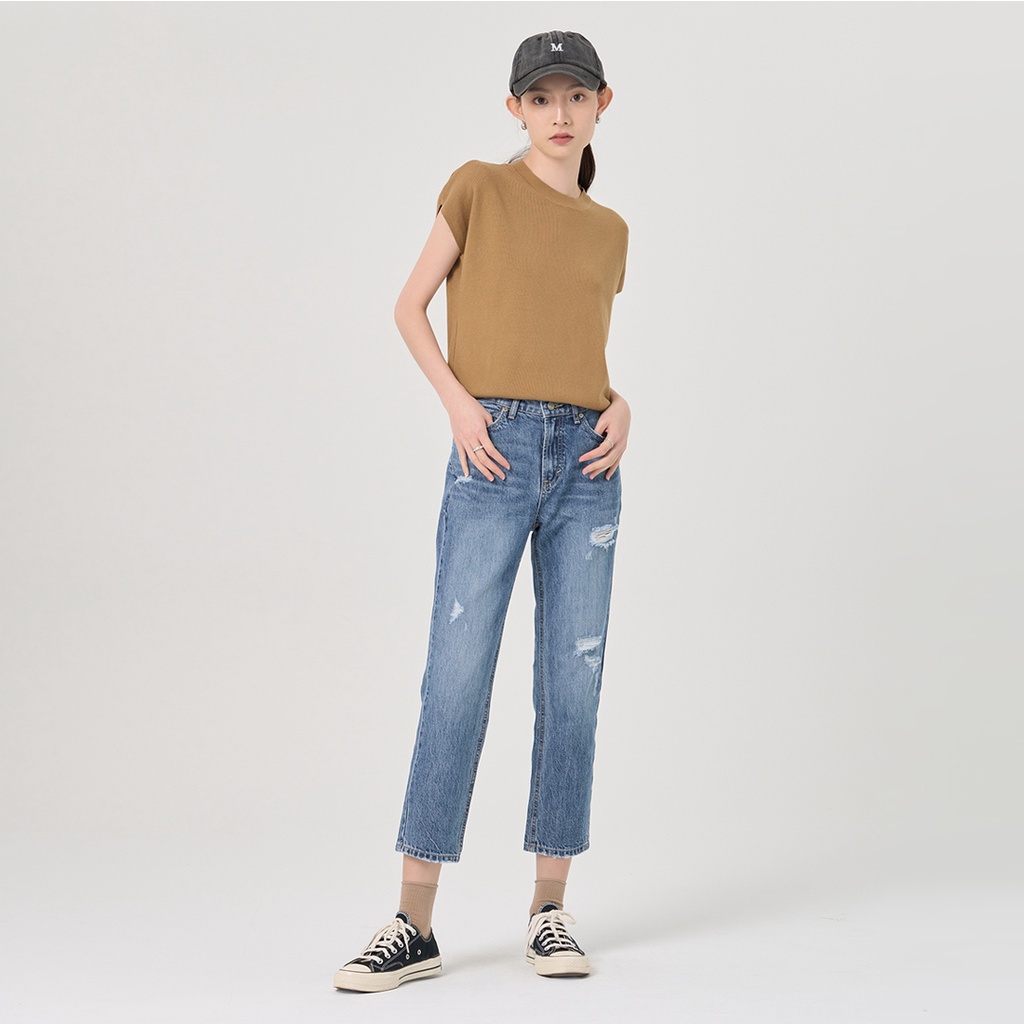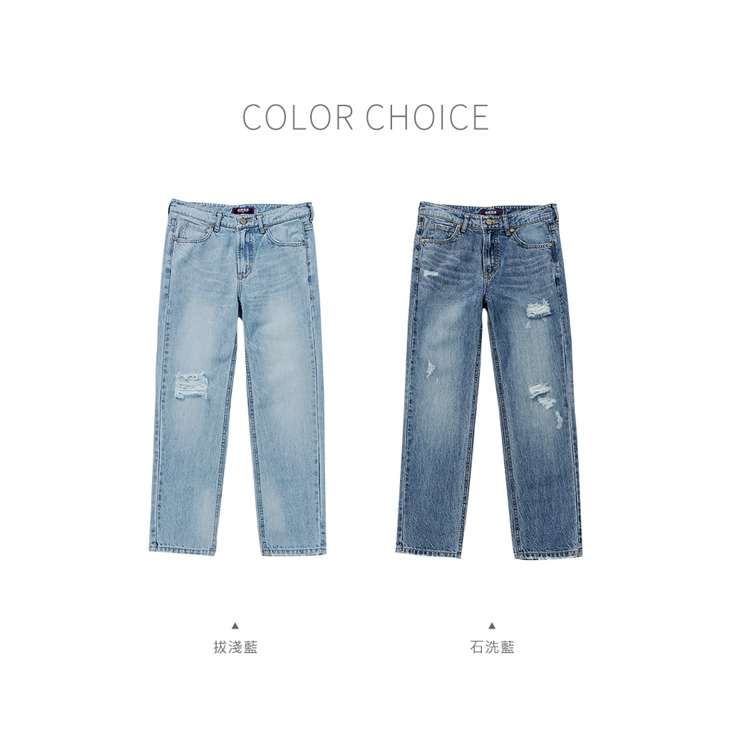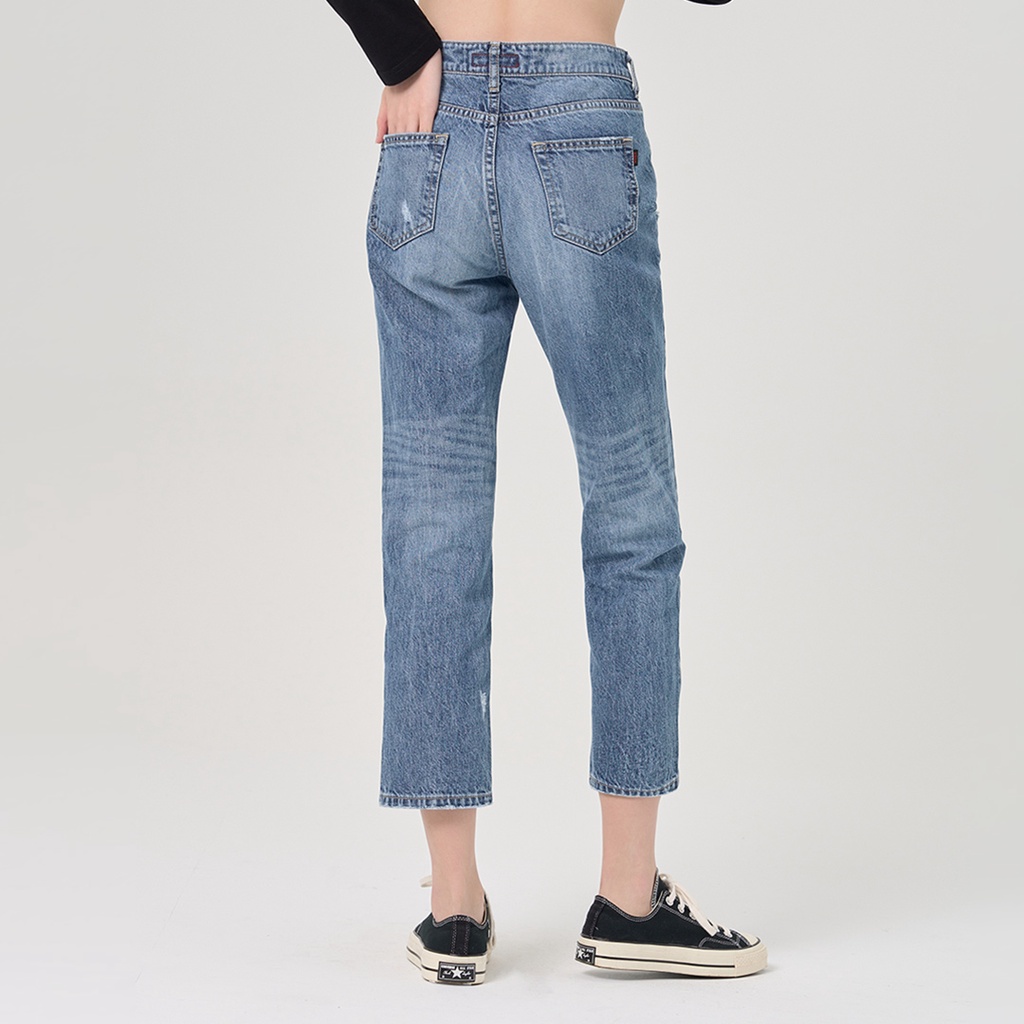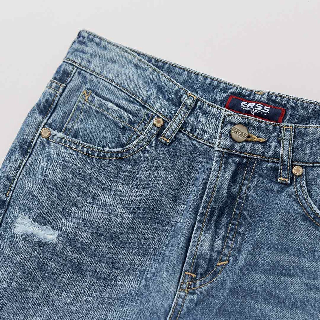 【ERSS】女裝 牛仔褲女 九分褲 純棉 直腳 水洗 刷破 藍【S37034】