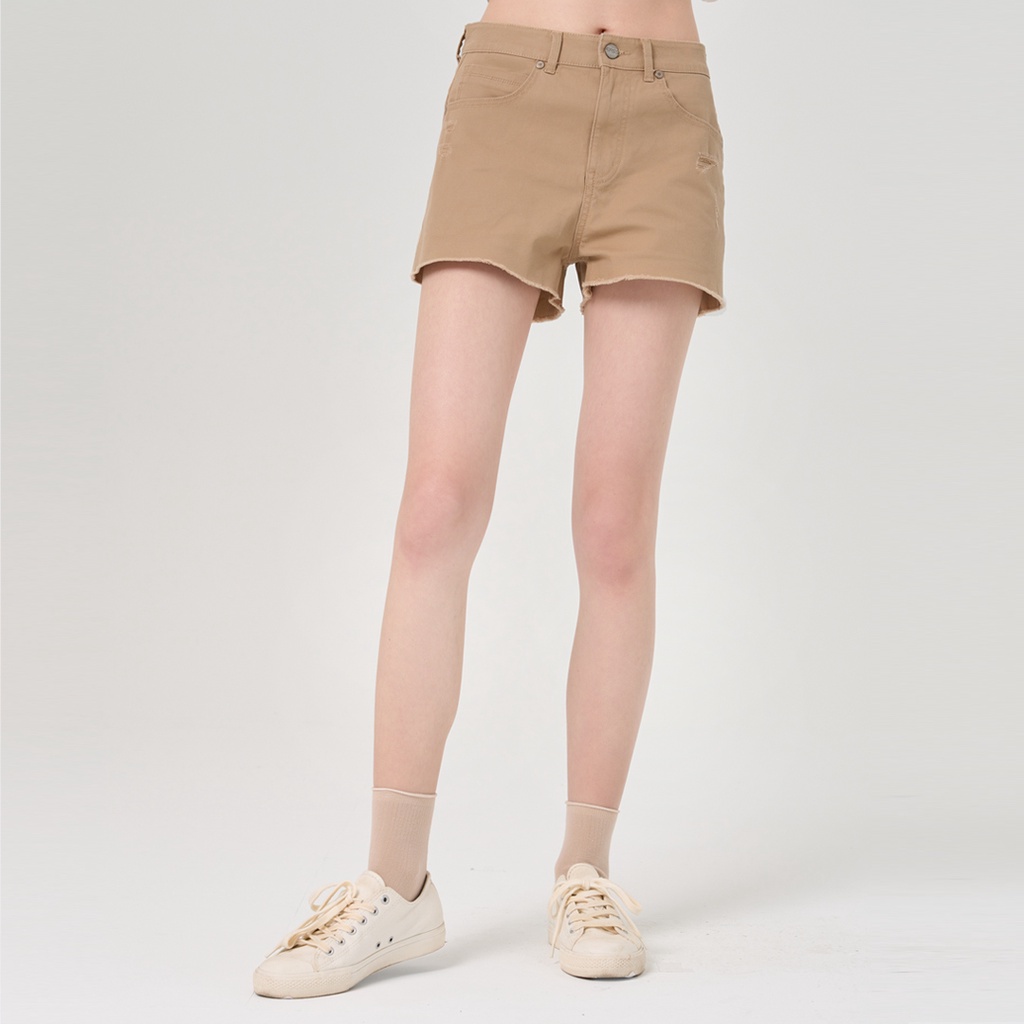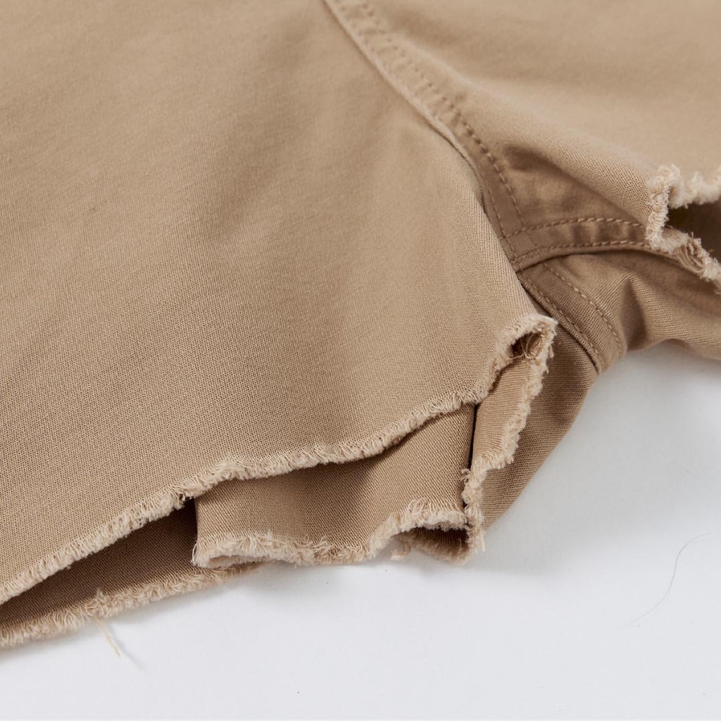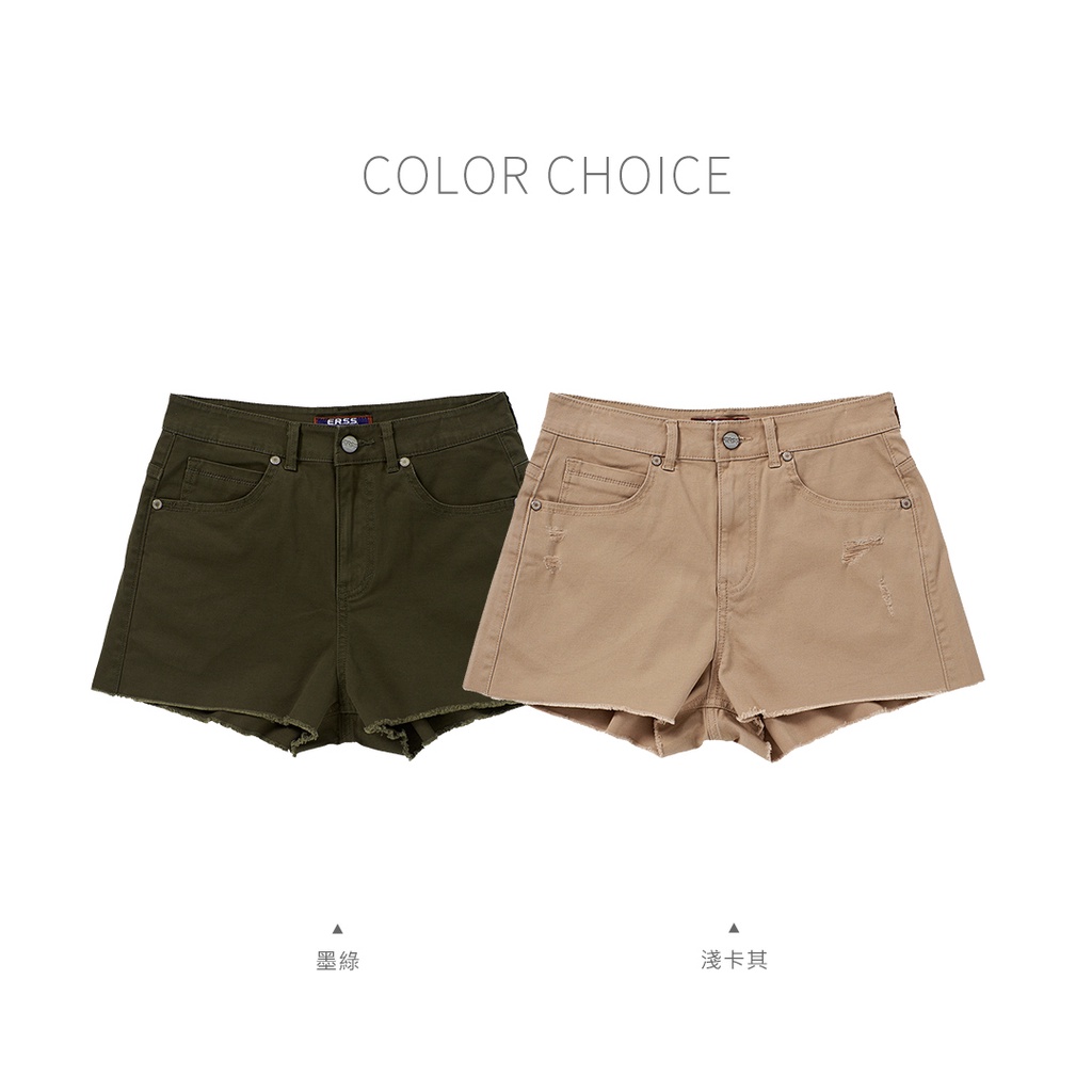 【ERSS】女裝 短褲 休閒褲 熱褲 真理褲 歐美風 戶外風 純棉 下擺不收邊 卡其【S20100】