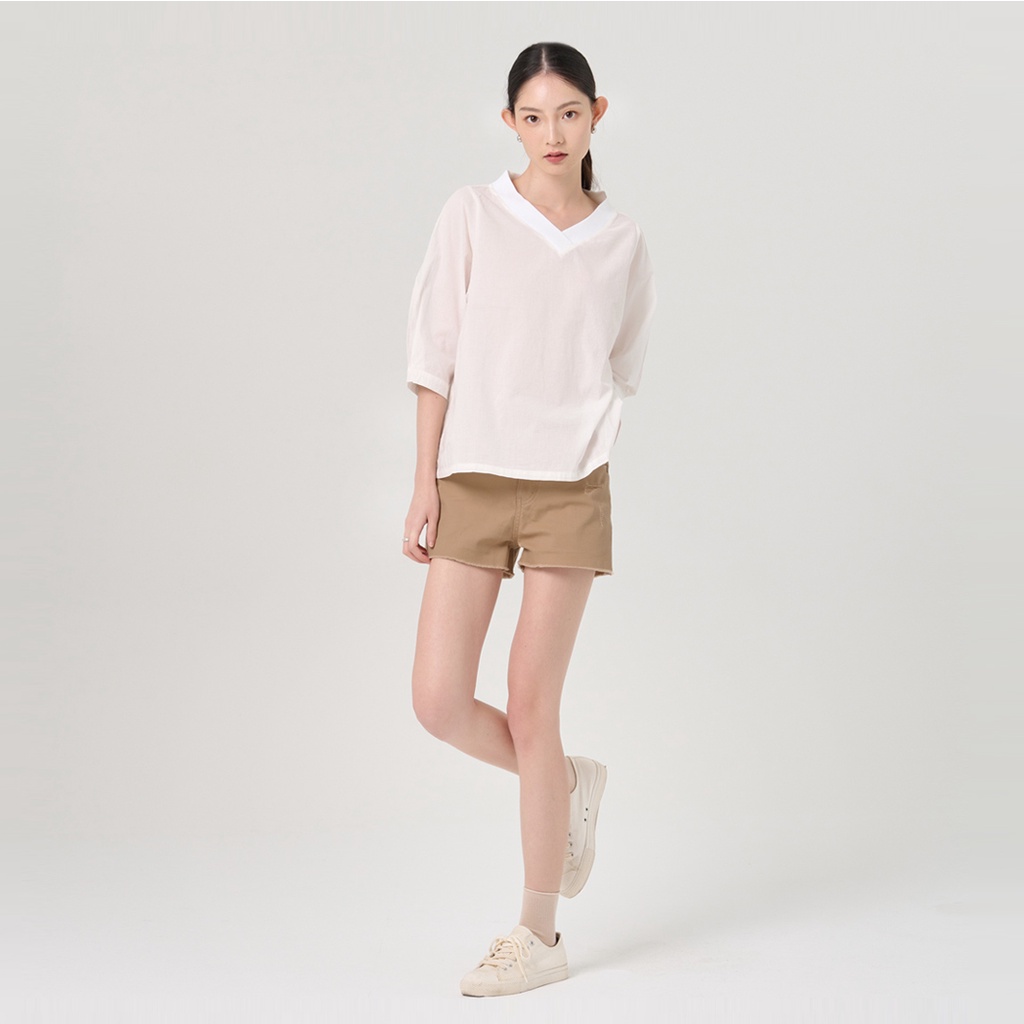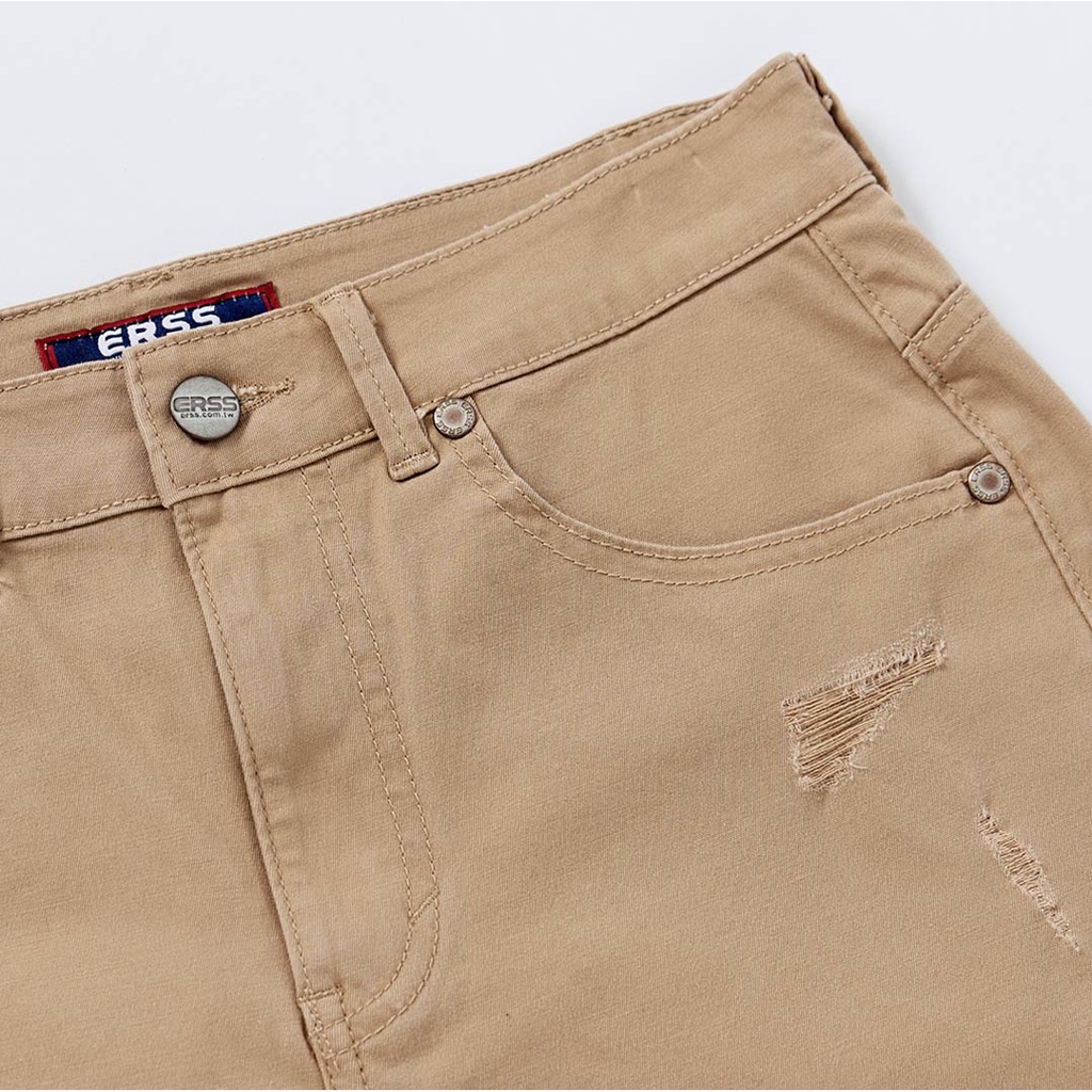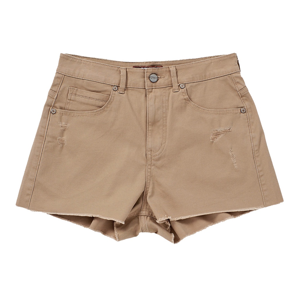 【ERSS】女裝 短褲 休閒褲 熱褲 真理褲 歐美風 戶外風 純棉 下擺不收邊 卡其【S20100】