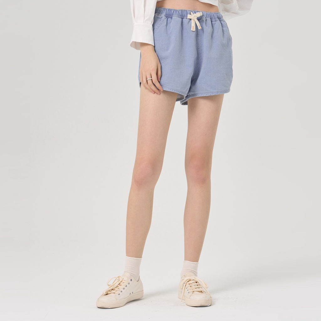 【ERSS】女裝 短褲 真理褲 休閒短褲 運動褲 顯瘦 丹寧色 棉 彈性 淺藍【S20107】