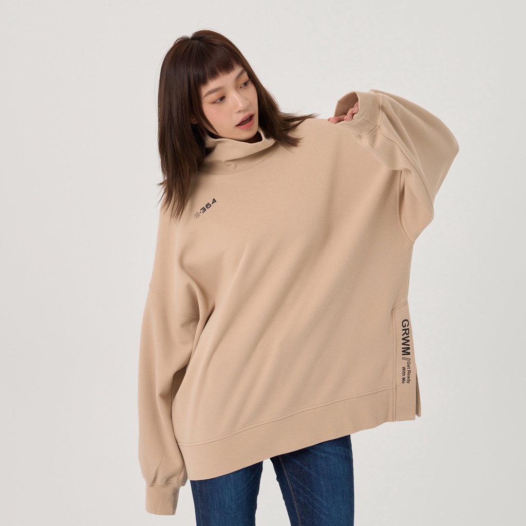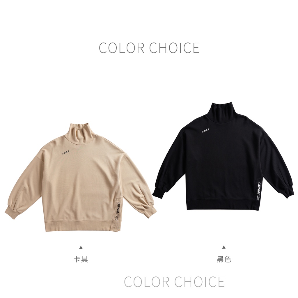 【ERSS】女裝 長袖上衣 長袖 上衣 寬版上衣 高領 印字 特殊剪裁 卡其【K60252】