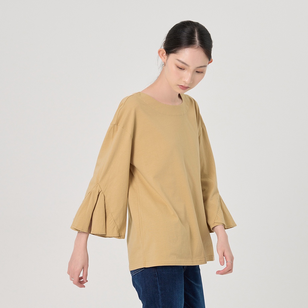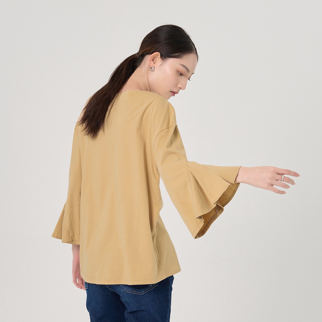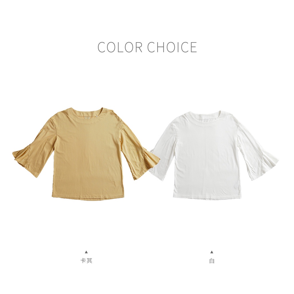 【ERSS】女裝 長袖上衣 七分袖 氣質上衣 純棉 女袖子 飄飄 卡其【K60241】