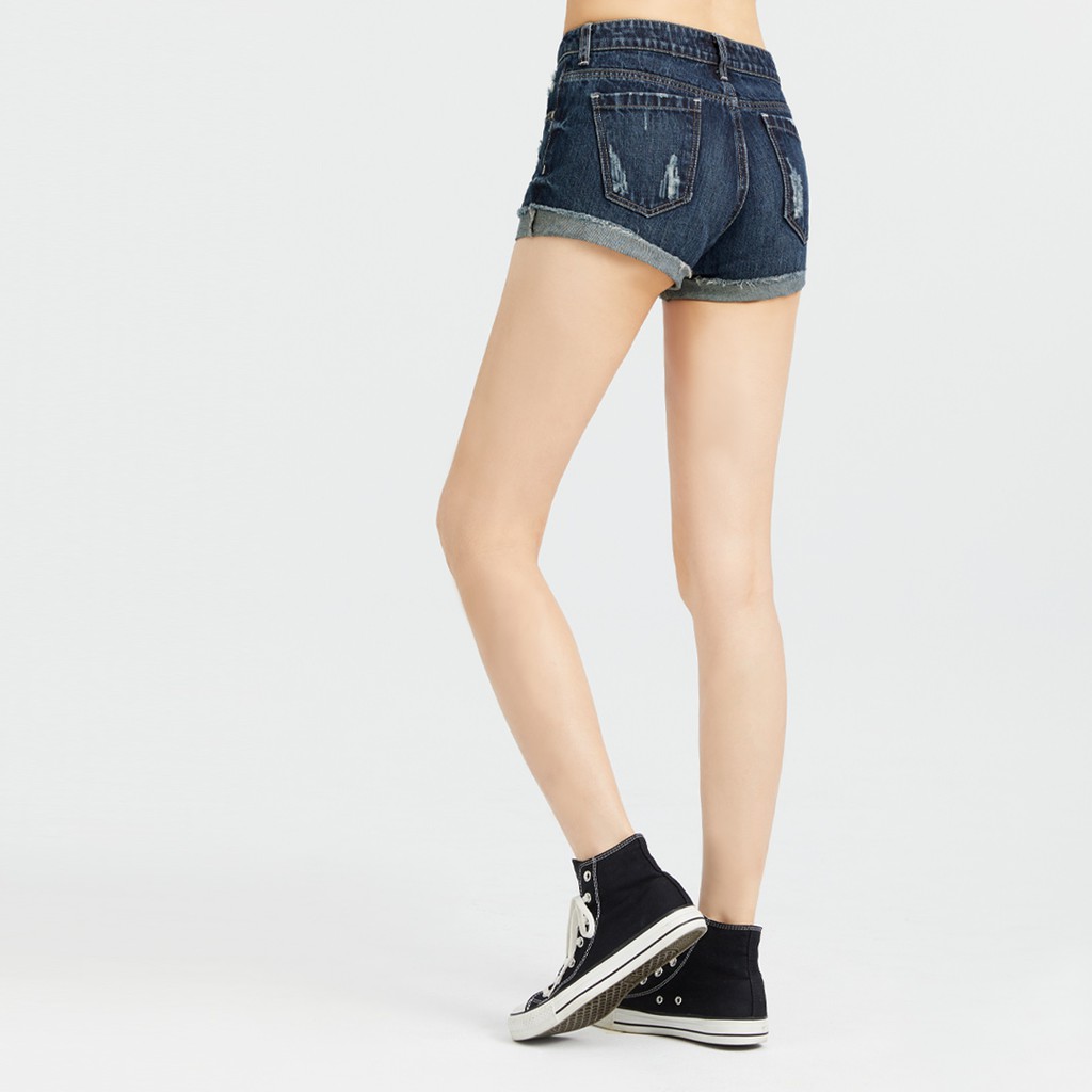 【ERSS】女裝 短褲 牛仔短褲 女短褲 牛仔褲 個性 刷破 反褶 淺藍【S20045】
