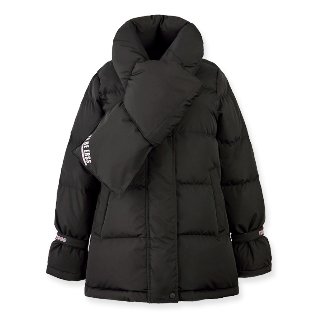 【ERSS】 女裝 羽絨外套 羽絨外套女 保暖外套 羽絨服 圍巾 黑色【K10128】
