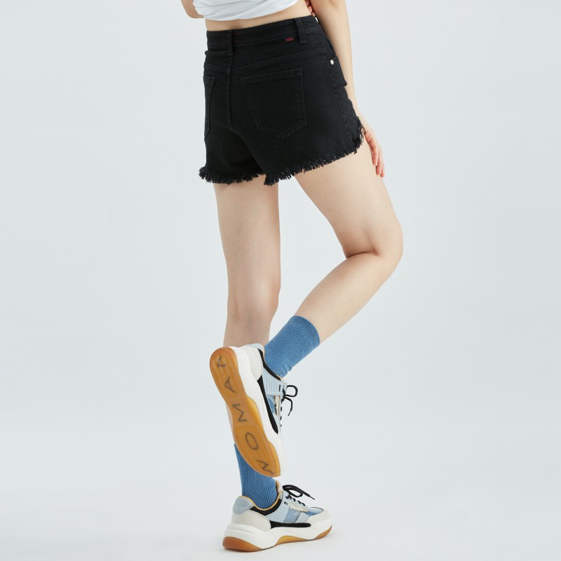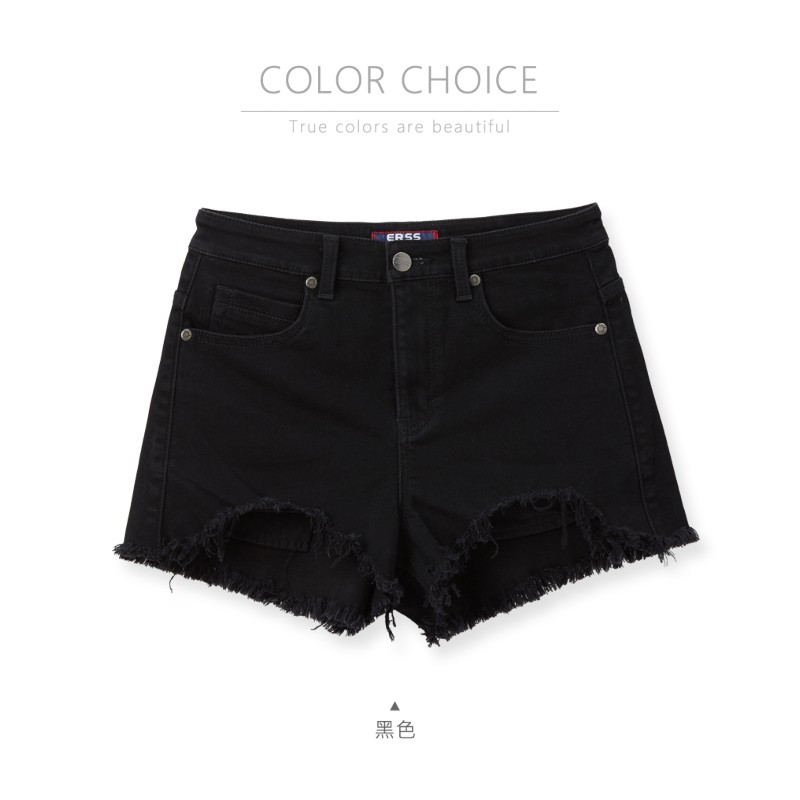 【ERSS】女裝 短褲 黑色短褲 牛仔短褲 彈性 刷破 黑色【S20039】