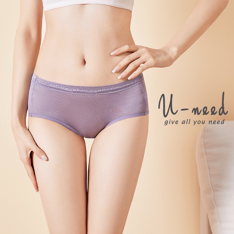 花邊無痕中腰三角蠶絲內褲 女內褲 純蠶絲 26針單面70克 透氣舒適【9W5156】Uneed蠶絲