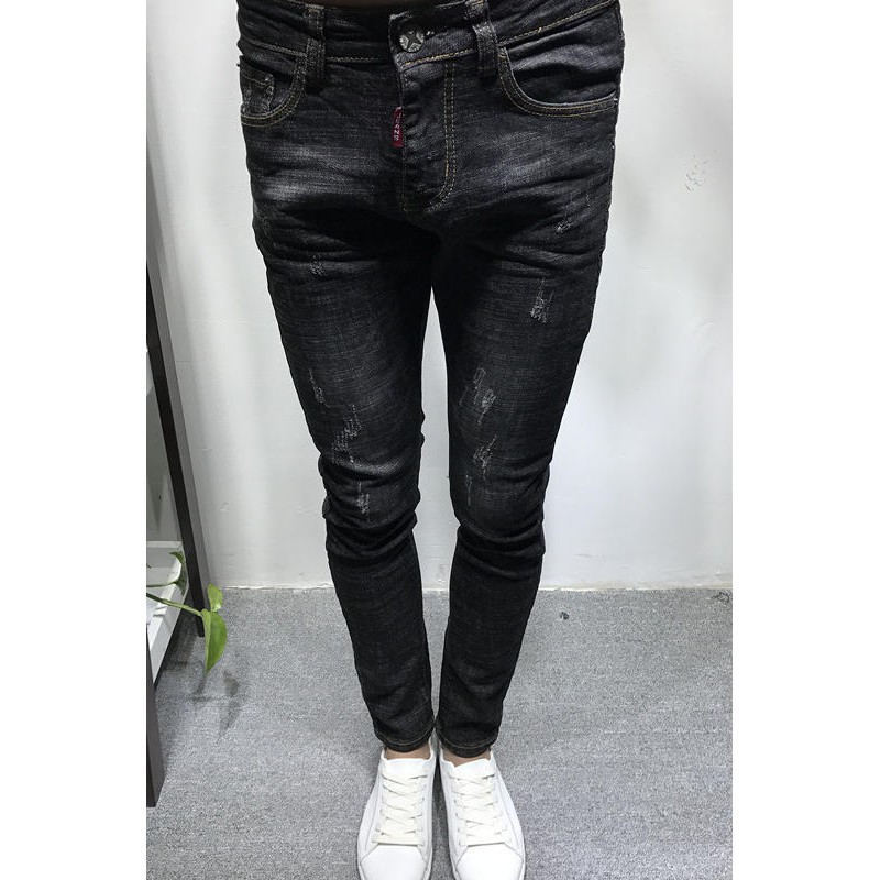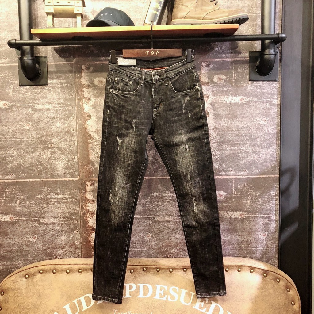 TOP_KOREA 刷白黑色窄管牛仔褲 J240