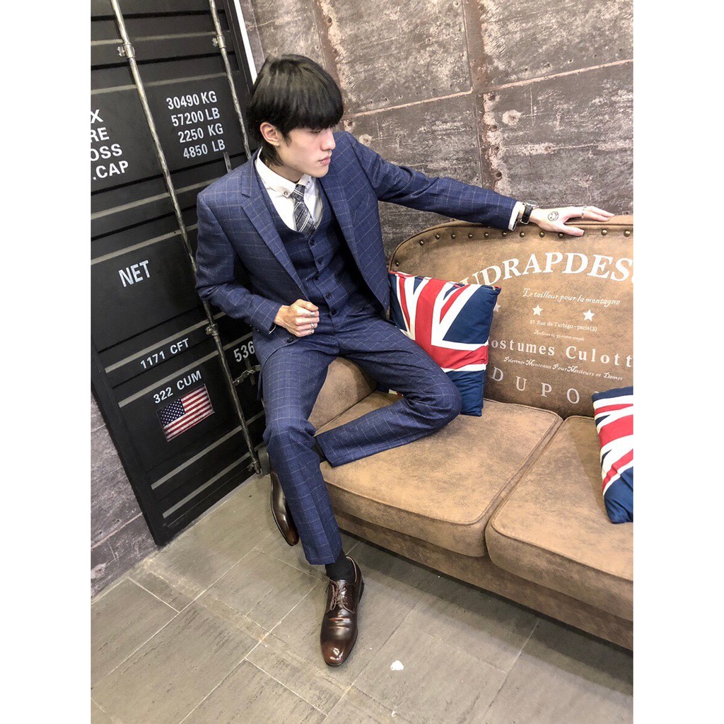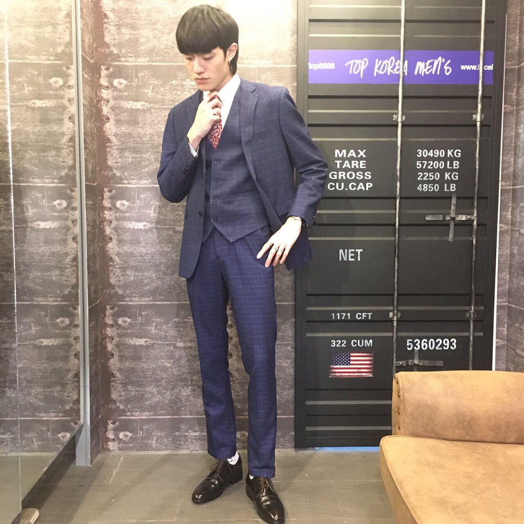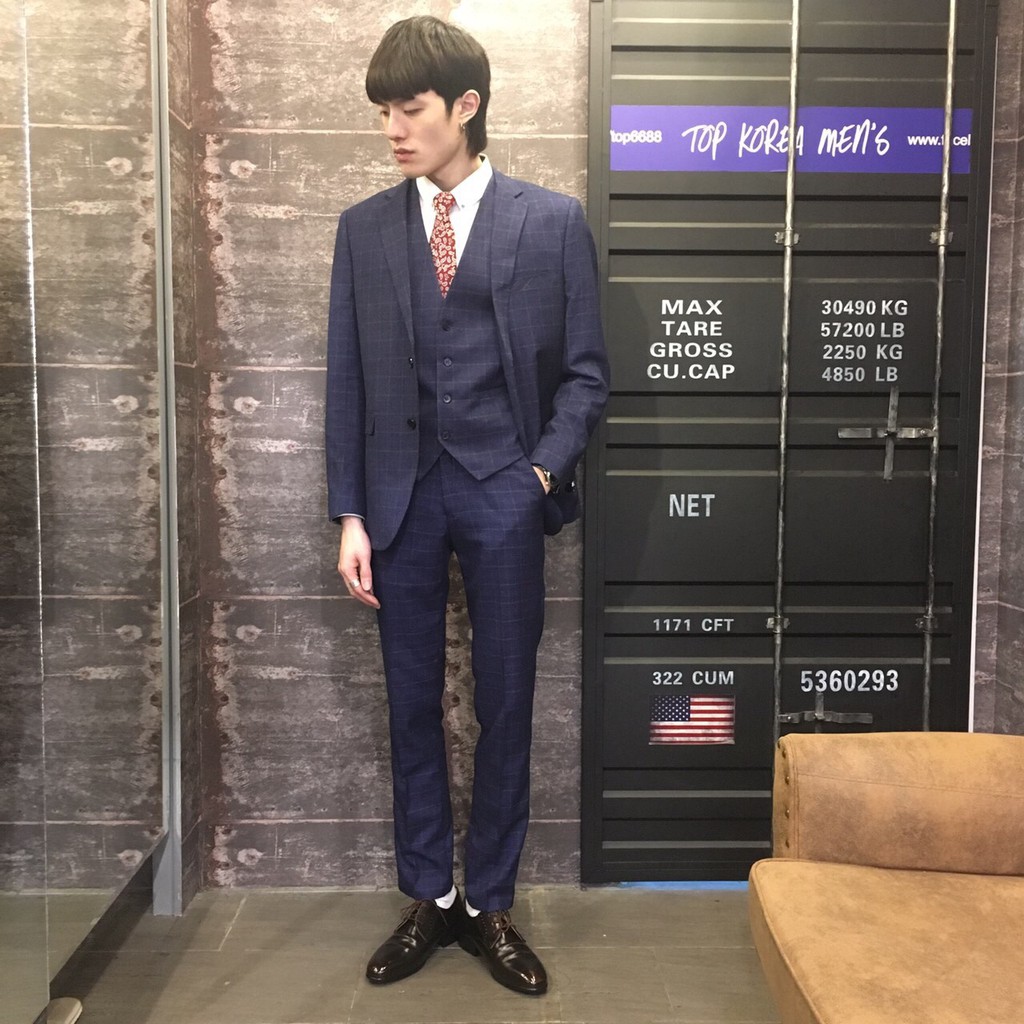 TOP_KOREA 正韓 毛料細格紋西裝套裝 (3件式)