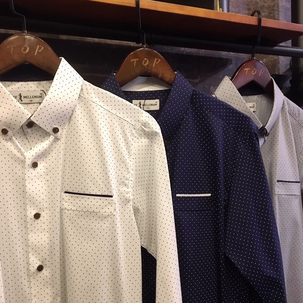 TOP_Korea 正韓CF MELLENIUM 抗皺免燙滿版點點長襯 D598