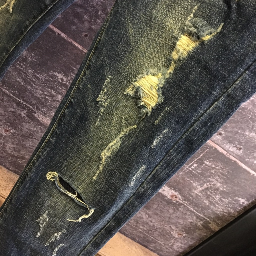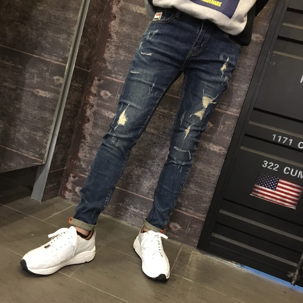 TOP_KOREA 補釘刷破窄管牛仔褲 J254