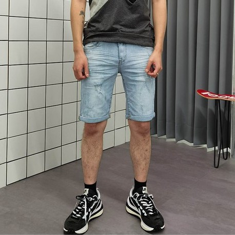 TOP_KOREA 正韓 潑白漆微刷破牛仔短褲 I198
