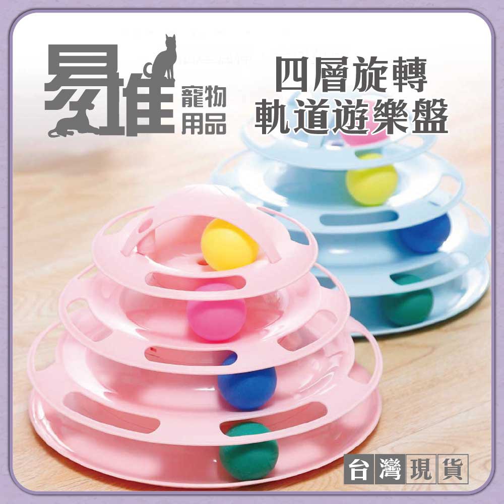 易堆寵物 貓玩具-四層旋轉軌道遊樂盤 藍/粉 寵物玩具 台灣現貨 可超取 (I002N11)