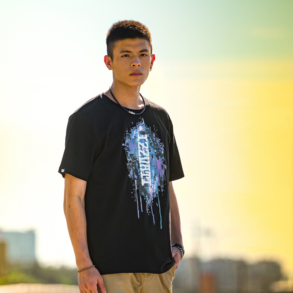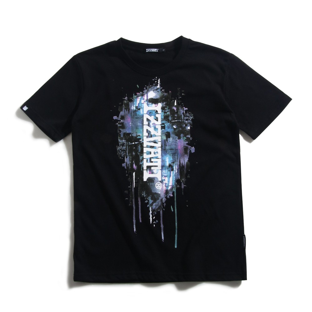 IZZVATI-墨彩數位仿箔短T-黑/白/紫/粉