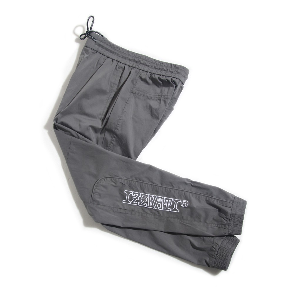 IZZVATI-休閒刺繡縮口褲-2色-灰/黑