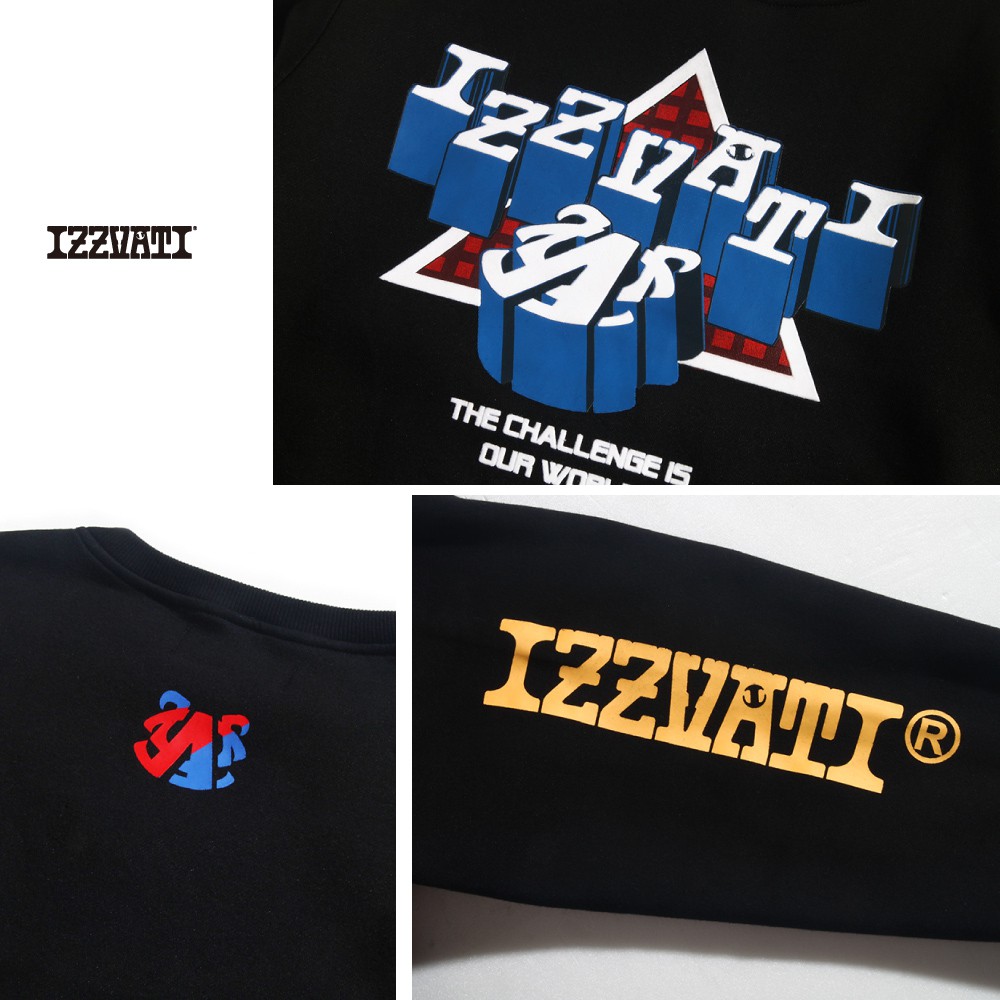 IZZVATI-立體LOGO植絨圓領大學T-黑