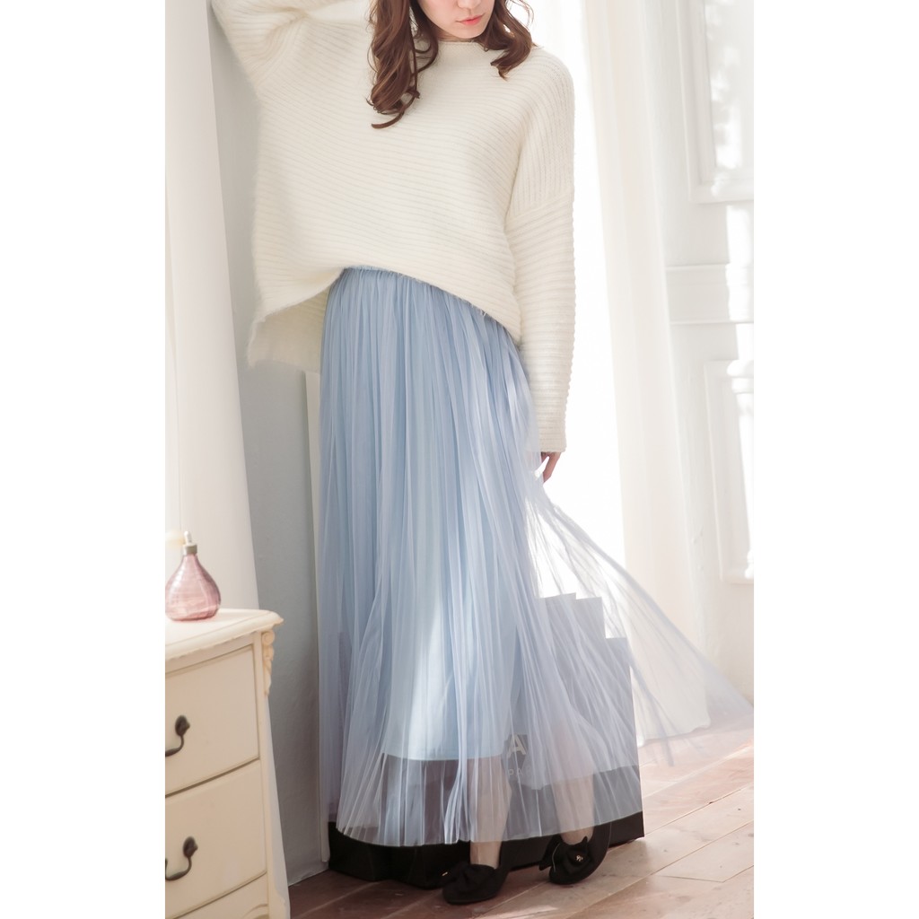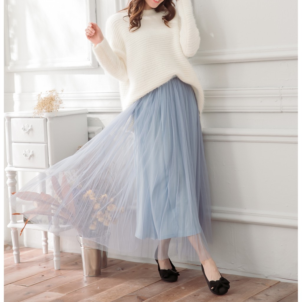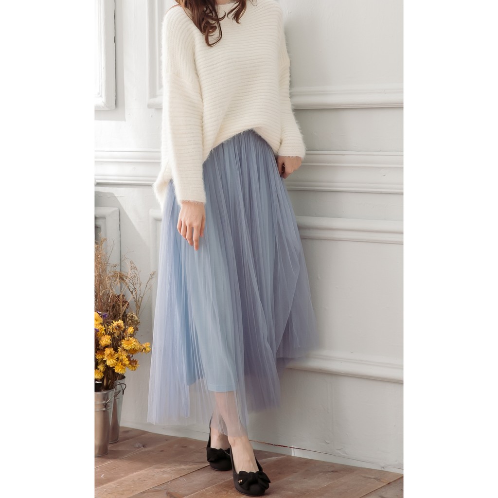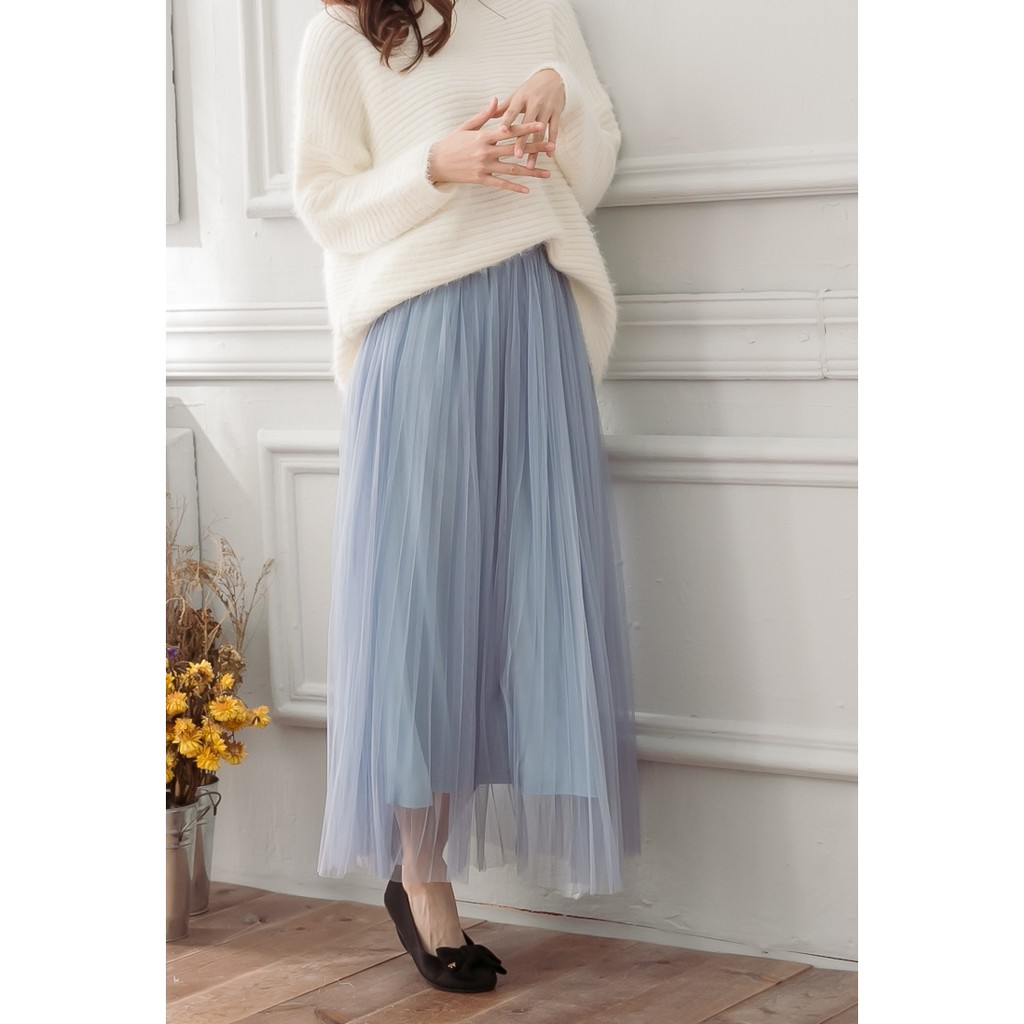 Peachy獨家訂製綿柔優雅綁帶百褶紗裙-仙杜瑞拉藍