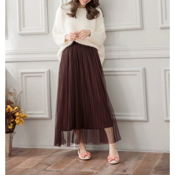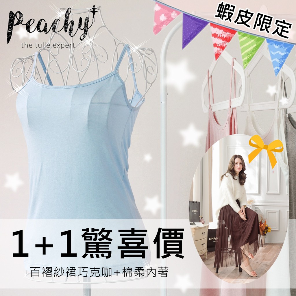 +蝦皮限定+Peachy獨家訂製綿柔優雅綁帶百褶紗裙-巧克咖+綿柔細肩內著(七色)