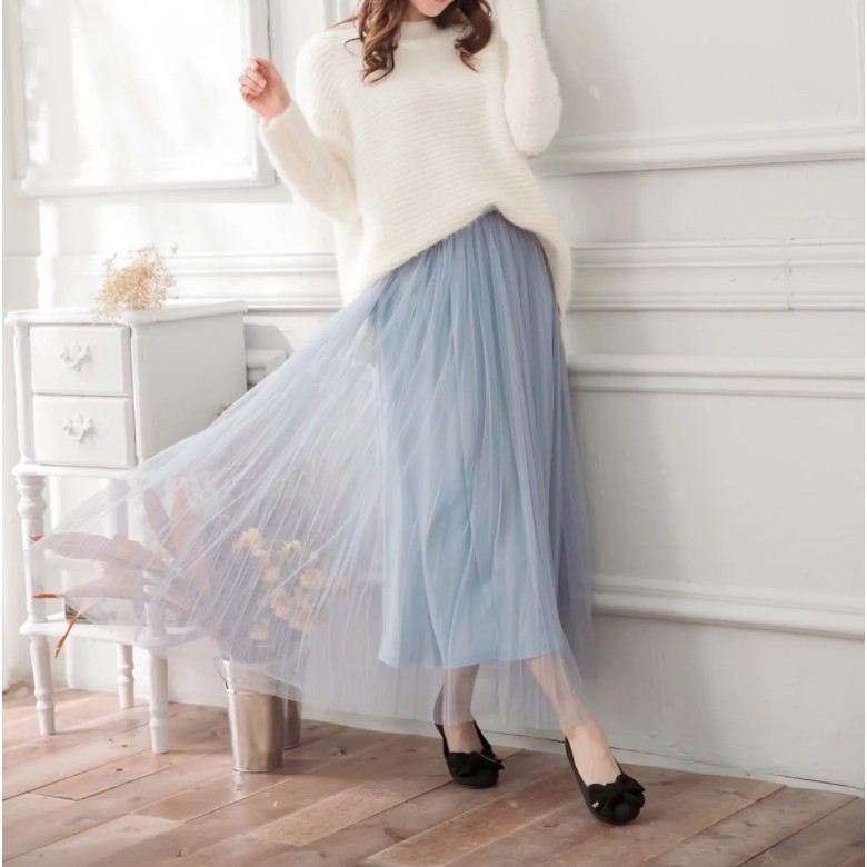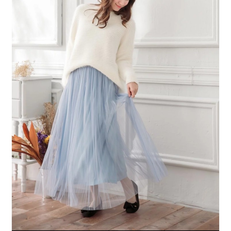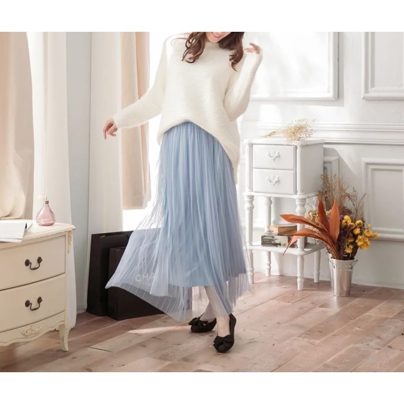 +蝦皮限定+Peachy獨家訂製綿柔優雅綁帶百褶紗裙-仙杜瑞拉藍+綿柔細肩內著(七色)
