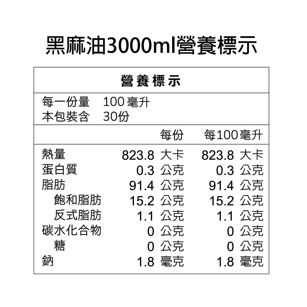 【佳源油品】 冷壓黑麻油3000ml 100%純正 無添加 低溫鮮粹 冬令進補 料理必備