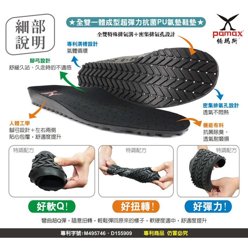 PAMAX 帕瑪斯-專利頂級超彈力氣墊鞋墊/AIR002-後跟加厚約25mm/男女尺寸3-13-大尺碼