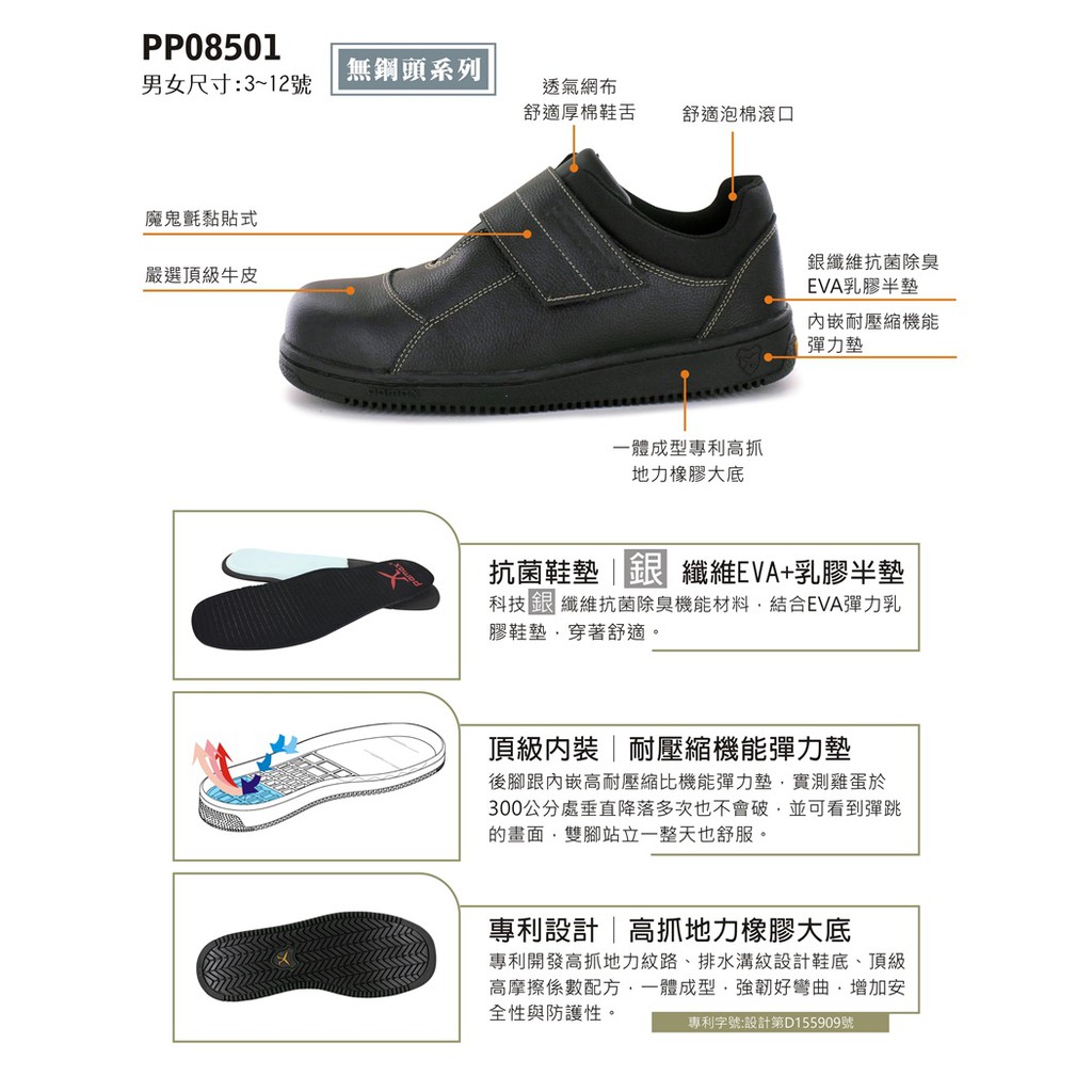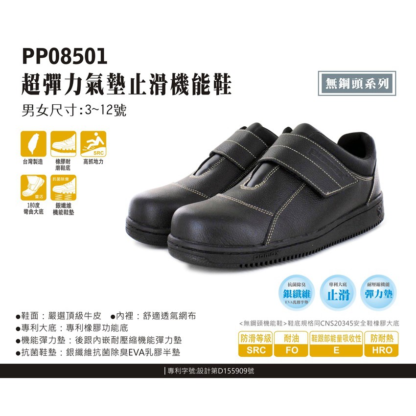PAMAX 帕瑪斯-超彈力氣墊高抓地力機能鞋/PP08501-無鋼頭/男女尺寸3-12-廚房抗滑工作鞋/事務工作鞋
