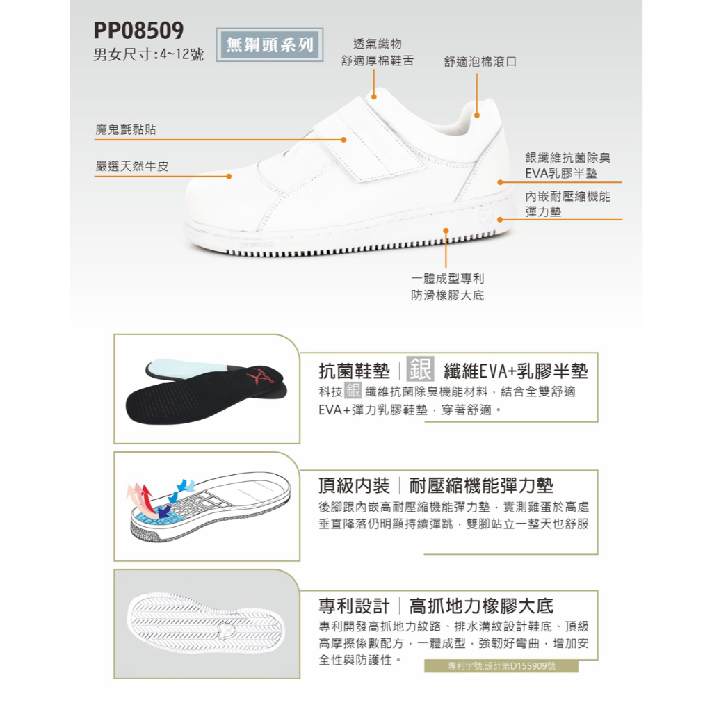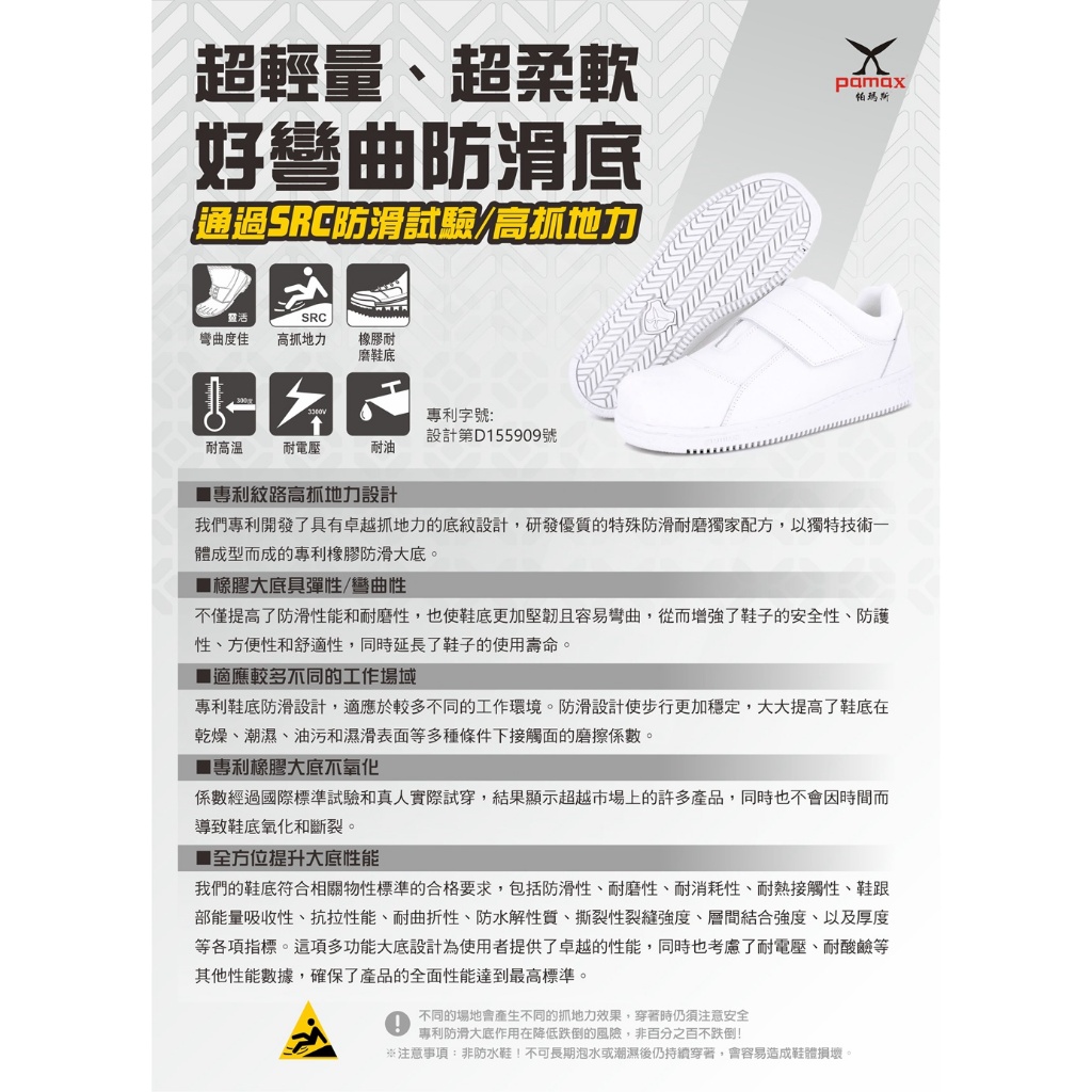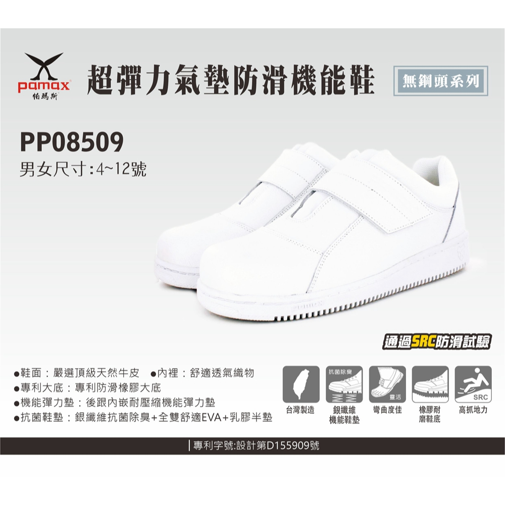 PAMAX 帕瑪斯-超彈力防滑氣墊鞋/PP08509-無鋼頭/男女尺寸3-12-護士鞋-食品業-加工廠