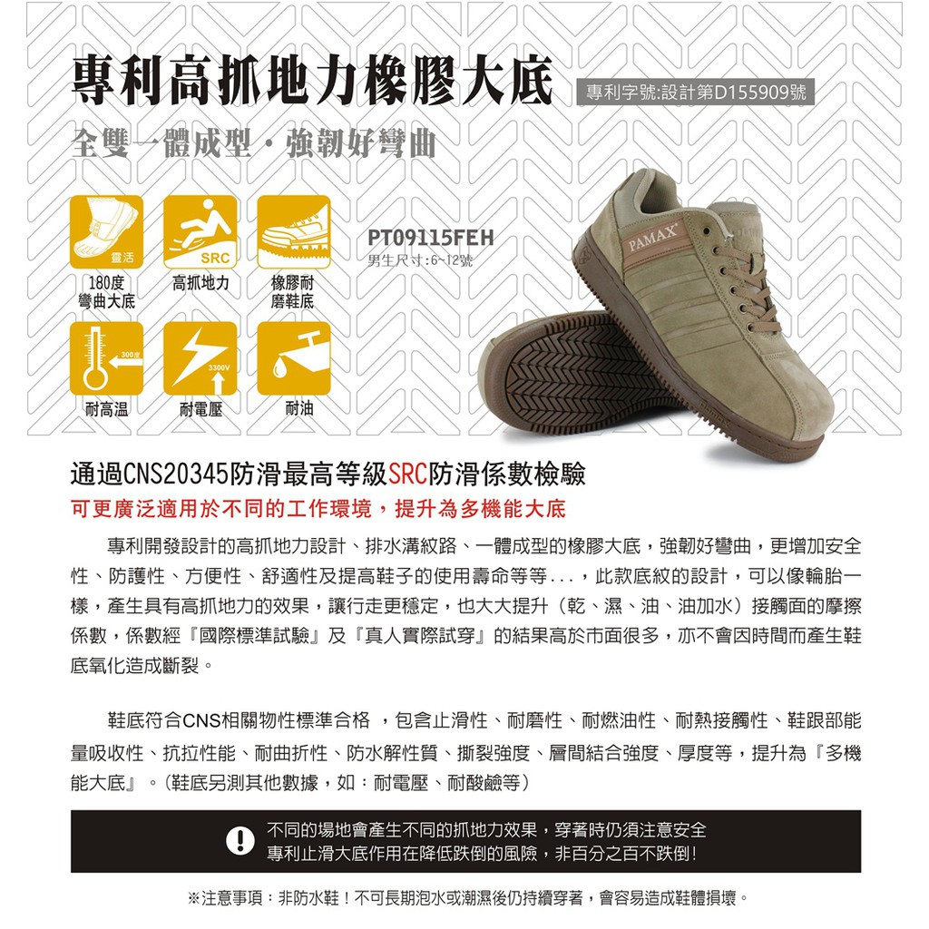 PAMAX 帕瑪斯-經典設計頂級氣墊安全鞋/PT09115FEH-(米色)牛皮/反光設計/男生尺寸6-12,安全鞋,防滑