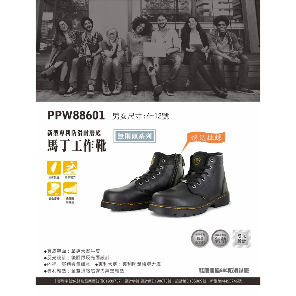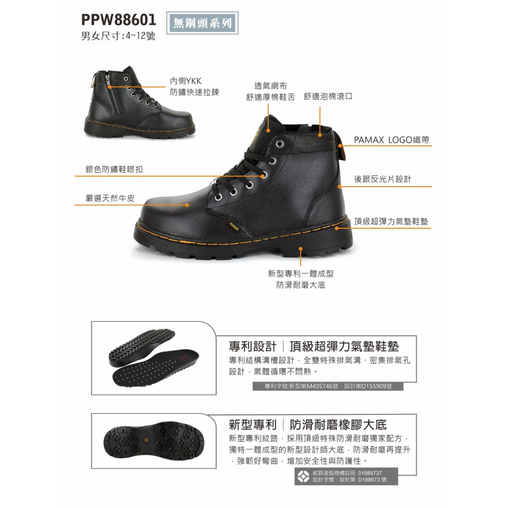 PAMAX 帕瑪斯-帥氣馬丁工作靴/PPW88601-無鋼頭/內側拉鍊/新型專利底/頂級超彈力氣墊/男女尺寸4-12